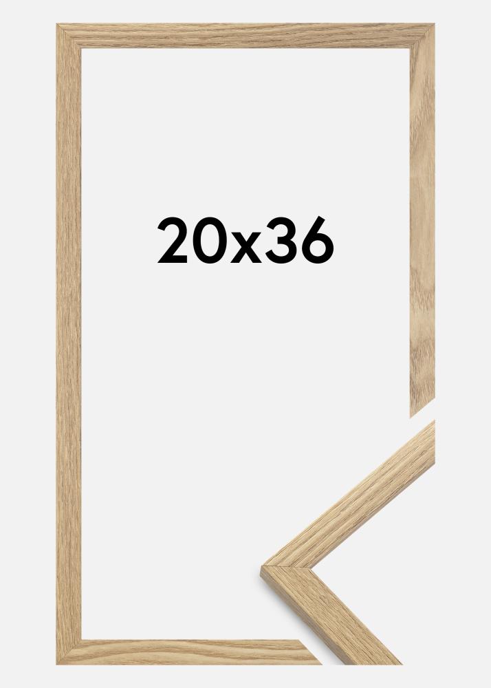 Rėmas pagamintas iš MDF medžiagos su laminuotu ąžuolo spalvos paviršiumi ir turi ploną rėmo profilį, kuris yra 14 mm. Yra pakankamai vietos, kad galėtumėte papildyti savo nuotraukas prabangia kartonine įdėkle dėl rėmo vidinio gylio (rėmo kraštelio gylis) 12 mm.