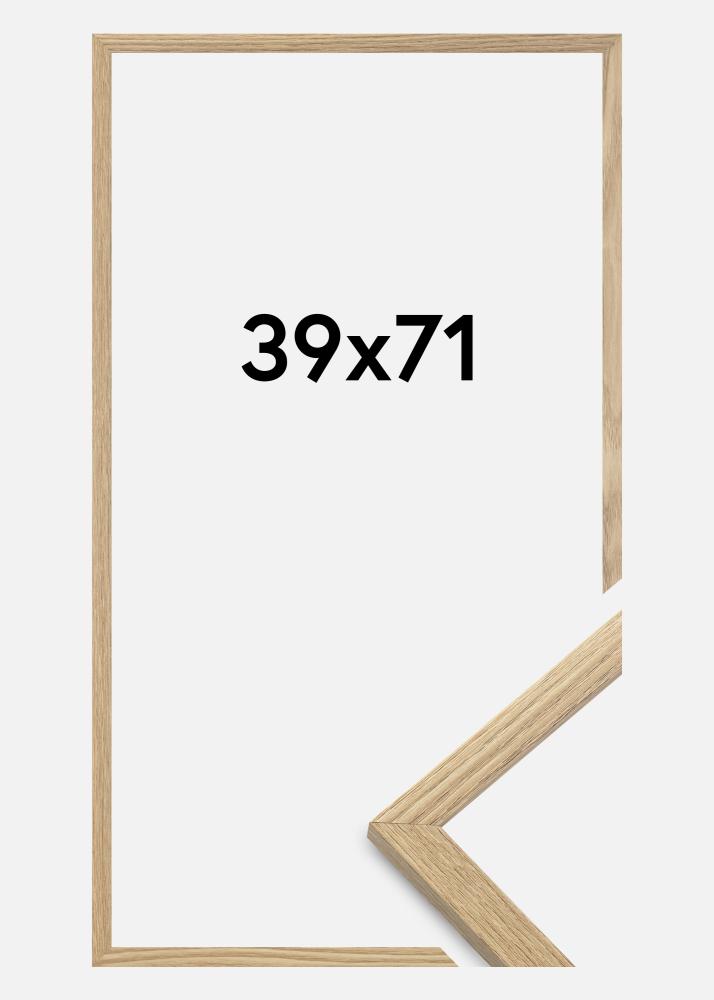 Rėmas pagamintas iš MDF medžiagos su laminuotu ąžuolo spalvos paviršiumi ir turi ploną rėmo profilį, kuris yra 14 mm. Yra pakankamai vietos, kad galėtumėte papildyti savo nuotraukas prabangia kartonine įdėkle dėl rėmo vidinio gylio (rėmo kraštelio gylis) 12 mm.