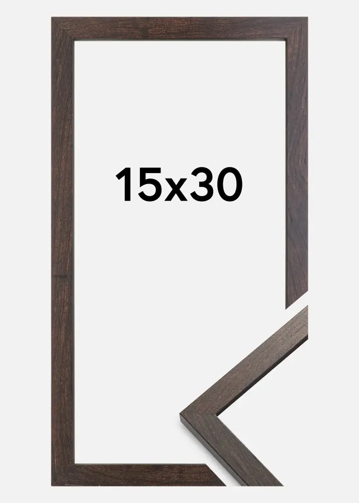 Ši riešutmedžio spalvos nuotraukų rėmelis yra tobulo stiliaus ir funkcionalumo derinys. Jo dydis - 15x30 cm, idealiai tinka jūsų mėgstamiems vaizdams ar meno kūriniams atskleisti. Tamsiai ruda, matinė apdaila suteikia elegantišką ir sofistikuotą pojūtį, kuris tinka tiek moderniems, tiek klasikiniams interjerams. Siaura 15 mm profilio juosta sukuria diskretišką rėminimą, leidžiančią jūsų motyvui išlikti dėmesio centre.