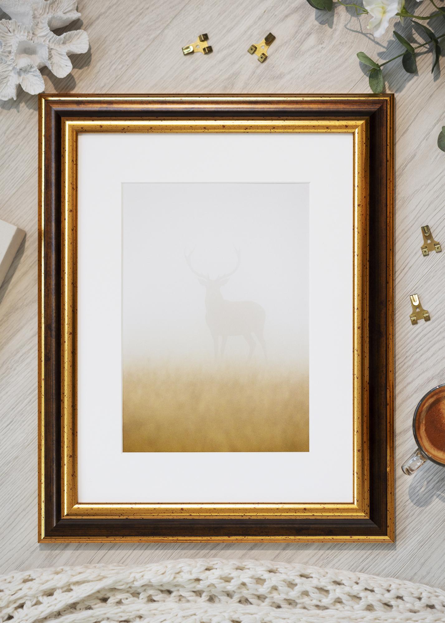 Šis 29,7x42 cm dydžio fotorėmelis yra tobula klasikinės elegancijos ir šiuolaikinio funkcionalumo dermė. Šilta aukso spalvos apdaila suteikia motyvui prabangų įrėminimą, kuris tikrai patraukia akį. 45 mm pločio Rėmas su švelniai nuožulniomis linijomis sukuria gylį, kuris leidžia paveikslui išsiskirti ant sienos.