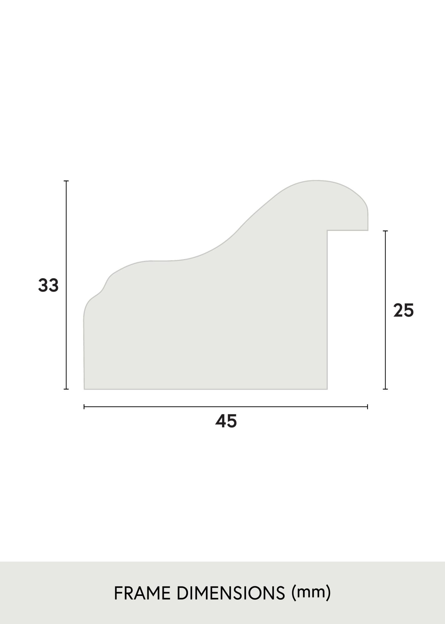 Rėmas pagamintas iš kompozitinės medžiagos, todėl yra ir tvirtas, ir lengvas. Jo 33 mm gylis suteikia tvirtumo pojūtį, tačiau neapsunkina bendro vaizdo. Glotni apdaila ir auksinė spalva kuria nesenstantį įspūdį, puikiai tinkantį tiek tradiciniam, tiek minimalistiniam ar prabangiam interjerui.