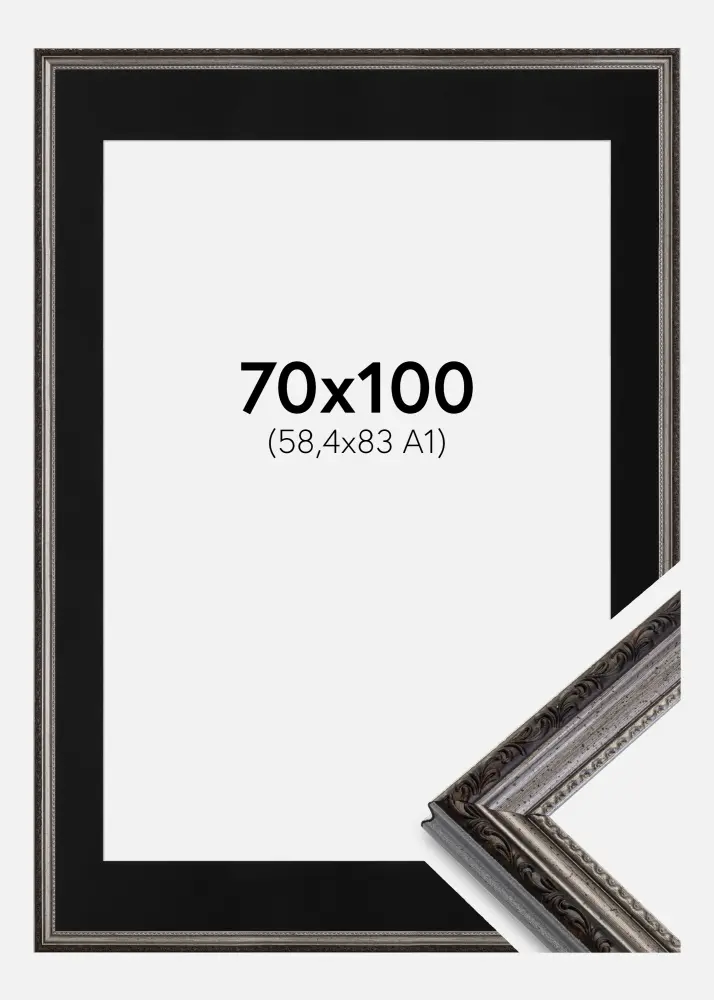 Rėmas Abisko Sidabras 70x100 cm - Paspartu Juodas 59,4x84 cm (A1)