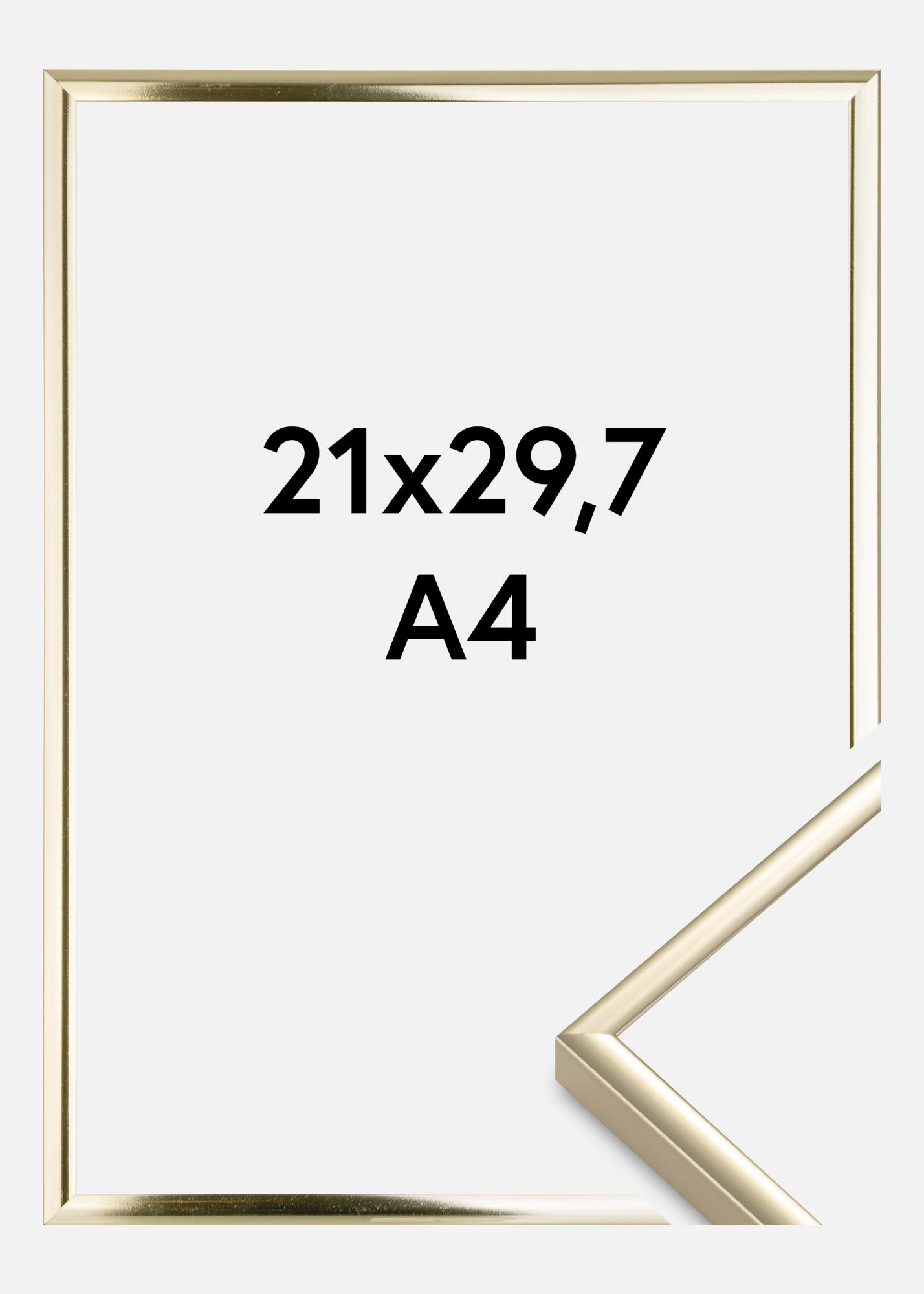 Tai plonas aliuminio rėmas, dailios blizgios auksinės spalvos. Rėmo plona juosta, tik 9 mm, leidžia pagrindiniam dėmesiui sutelkti tavo motyvus. Tai puiku, jei turi madingų plakatų ar nuotraukų su artimaisiais, kuriuos nori įtaisyti ant sienos.