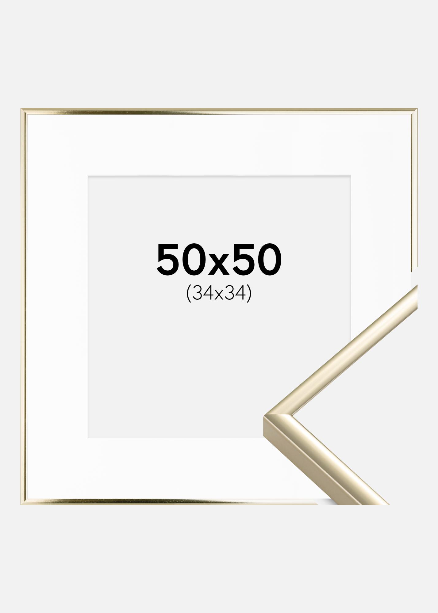 Rėmas Akiuminis Blizgus auksinis 50x50 cm - Paspartu Baltas 35x35 cm