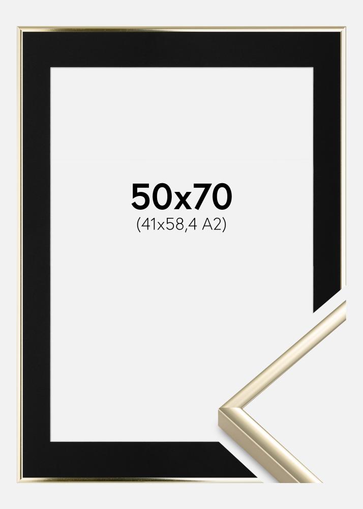 Rėmas Akiuminis Blizgus auksinis 50x70 cm - Paspartu Juodas 42x59,4 cm (A2)