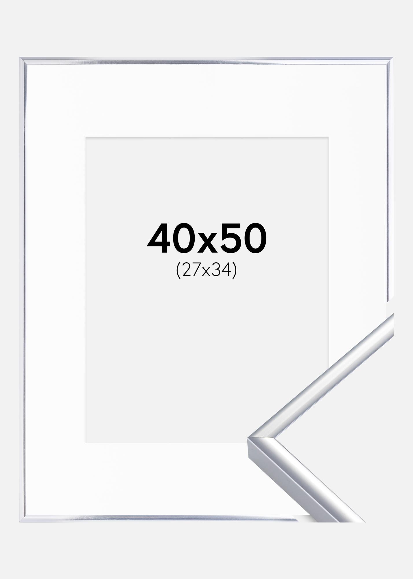 Rėmas Akiuminis Blizgus sidabrinis 40x50 cm - Paspartu Baltas 28x35 cm