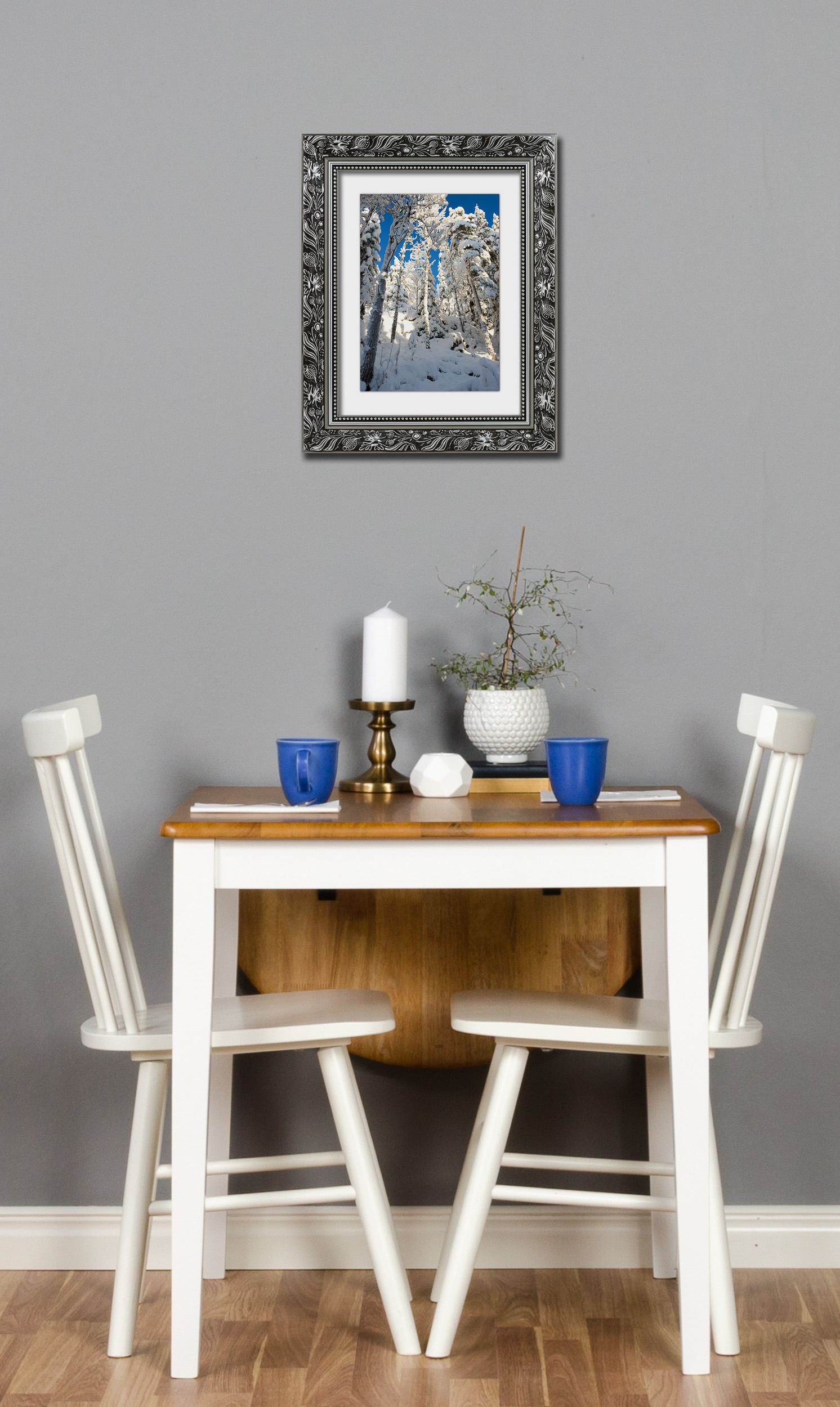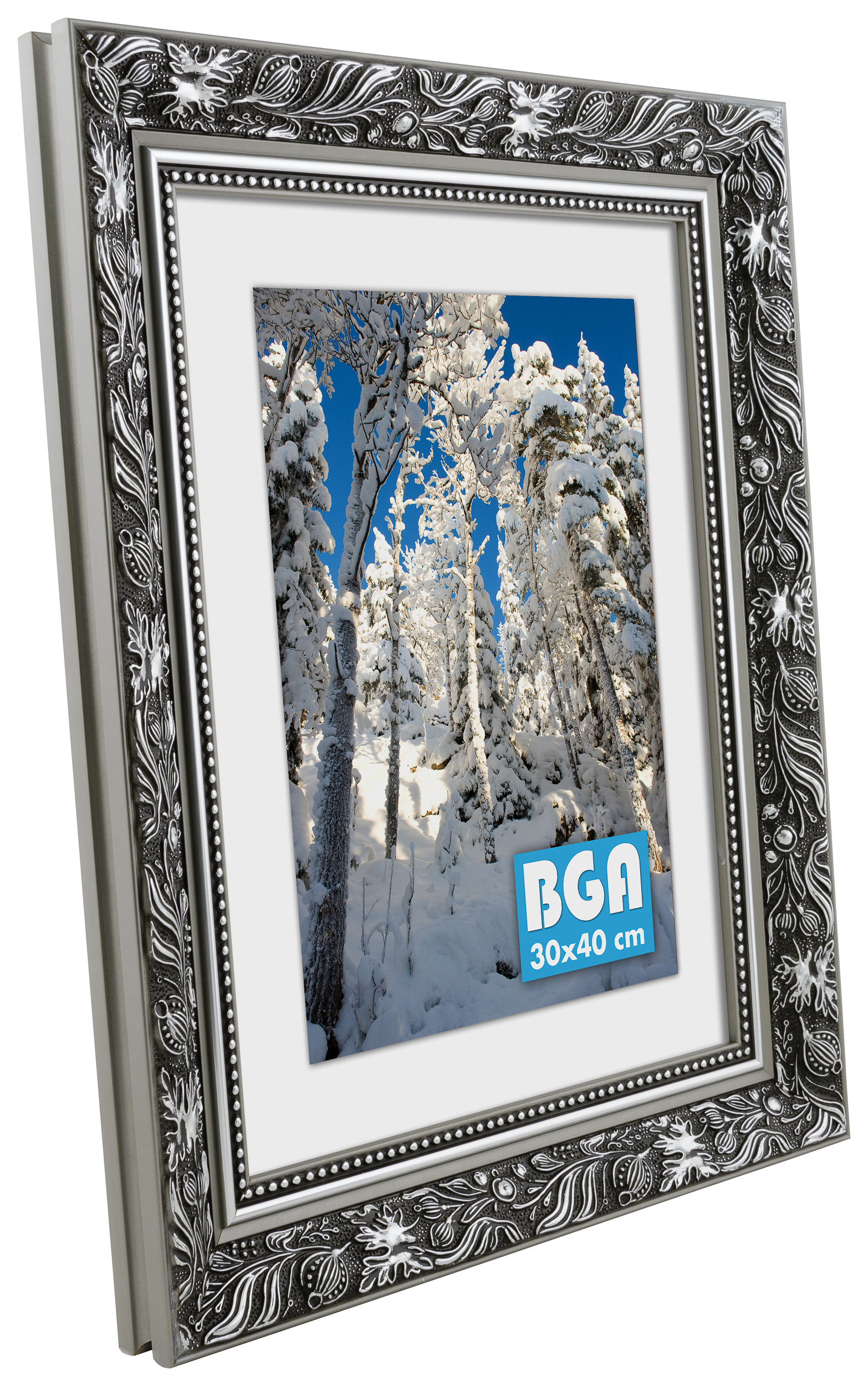 Padarykite sieną prabangia ir atkreipkite papildomą dėmesį į savo nuotrauką! Šis gražus rėmelis turi dvigubą profilį, kuris puikiai atrodo ant sienos. Kraštai visiškai sidabriniai, o priekinė dalis yra juoda su sidabro spalvos lapų ir išraižytų formų raštu. Šalia stiklo eina sidabrinis kraštas ir juoda dalis su perlo raštu sidabro spalvoje. Kadangi rėmelis yra pagamintas pagal jūsų išmatavimus, galite būti tikri, kad jis idealiai tiks ten, kur norite.