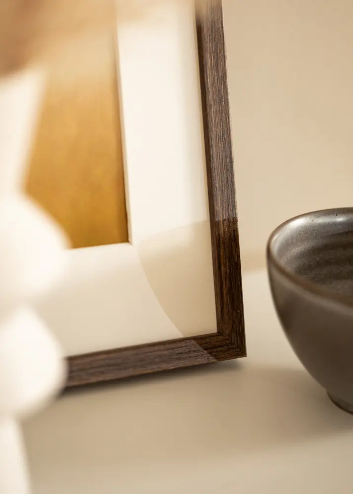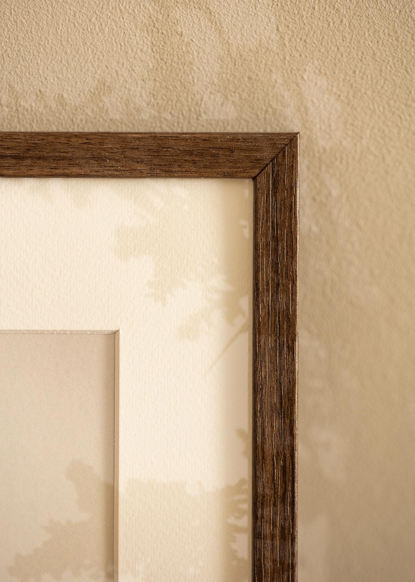 Dėl pasukamų metalinių spaustukų lengva įmontuoti motyvą į rėmą, o praktiški metaliniai kabliai gale leidžia pasirinkti, ar norite kabinti riešutmedžio rėmą horizontaliai ar vertikaliai. Nesvarbu, ar nusprendėte jį pastatyti svetainėje, miegamajame ar biure, šis 21 x 29,7 cm dydžio rėmas puikiai papildys jūsų interjerą. Be to, rėmelis yra kelių dydžių, kad tiktų visiems jūsų rėminimo poreikiams.