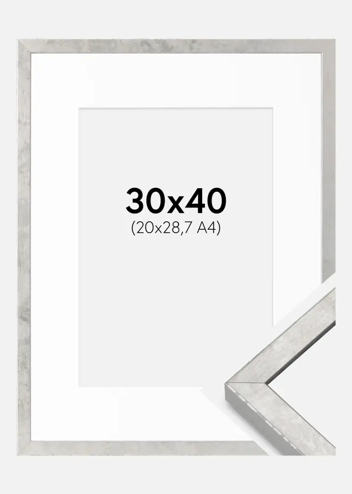 Rėmas Ares Sidabras 30x40 cm - Paspartu Baltas 21x29,7 cm