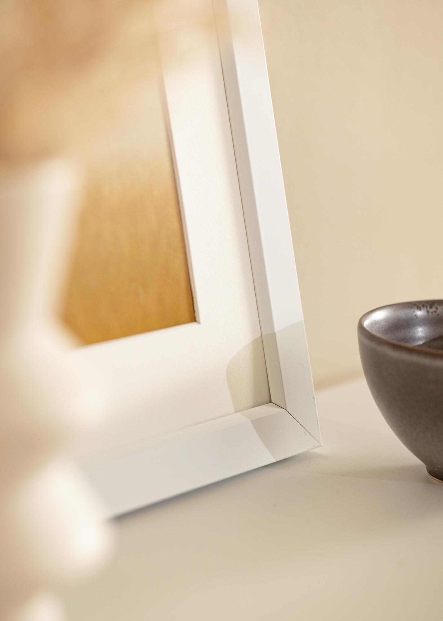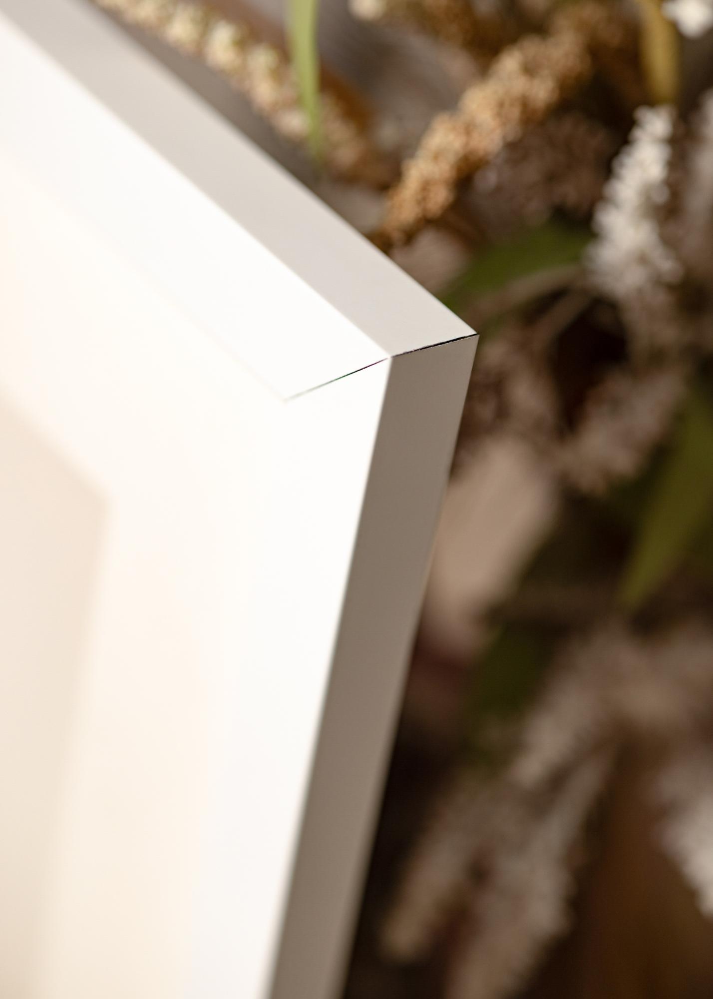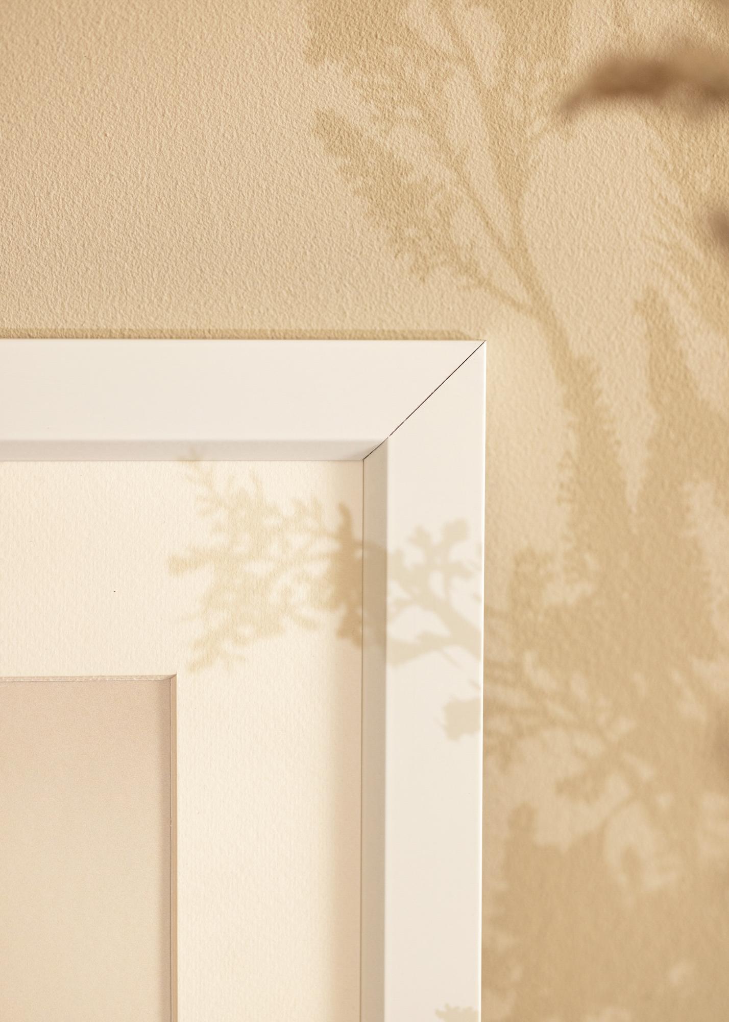 Stilingas baltas aliuminio rėmas su nuožulnia vidine briauna, suteikianti paveikslui elegantišką išvaizdą ir derinanti su visų tipų interjerais. Baltas rėmas tinka visų tipų vaizdams, leidžia visą dėmesį sutelkti į motyvą ir jį išryškinti. Labiausiai efektyvu prieš ryškiaspalvius ar grafinius motyvus, kurie sudaro kontrastą su baltumu. Derinkite kelių skirtingų tipų baltų rėmų su motyvais tema prie sienos paveikslų galerijos, kuri tampa svetainės akcentu.