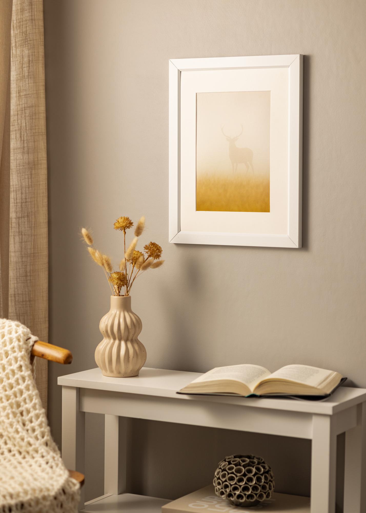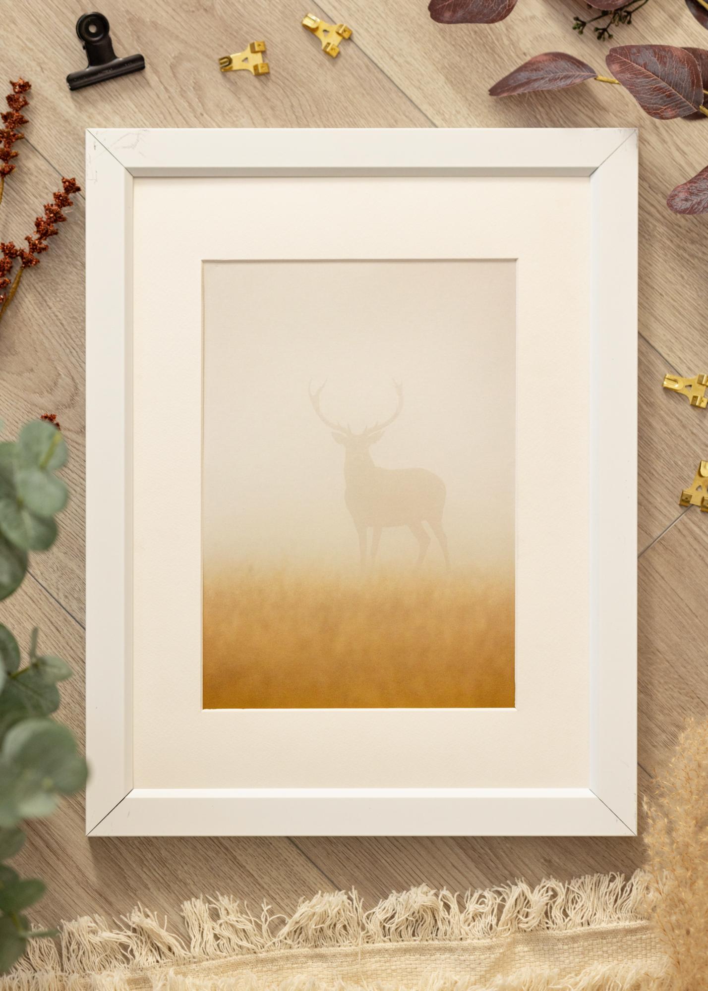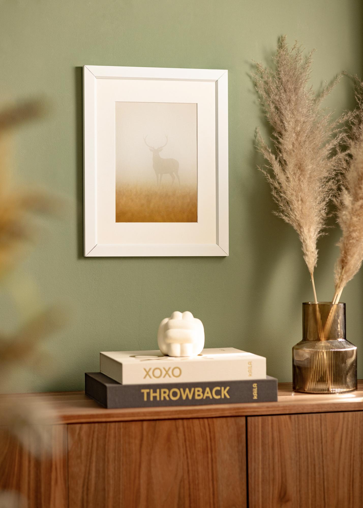 Stilingas baltas aliuminio rėmas su nuožulnia vidine briauna, suteikianti paveikslui elegantišką išvaizdą ir derinanti su visų tipų interjerais. Baltas rėmas tinka visų tipų vaizdams, leidžia visą dėmesį sutelkti į motyvą ir jį išryškinti. Labiausiai efektyvu prieš ryškiaspalvius ar grafinius motyvus, kurie sudaro kontrastą su baltumu. Derinkite kelių skirtingų tipų baltų rėmų su motyvais tema prie sienos paveikslų galerijos, kuri tampa svetainės akcentu.