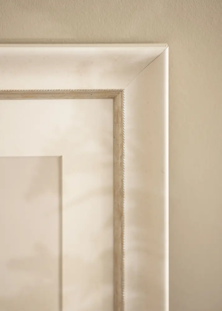 Tvirta rėmelis bet kokio dydžio su balta klasikine profiliu. Šalia motyvo yra elegantiškas sidabrinės spalvos kraštas, kuris suteikia rėmui papildomo žavesio.
