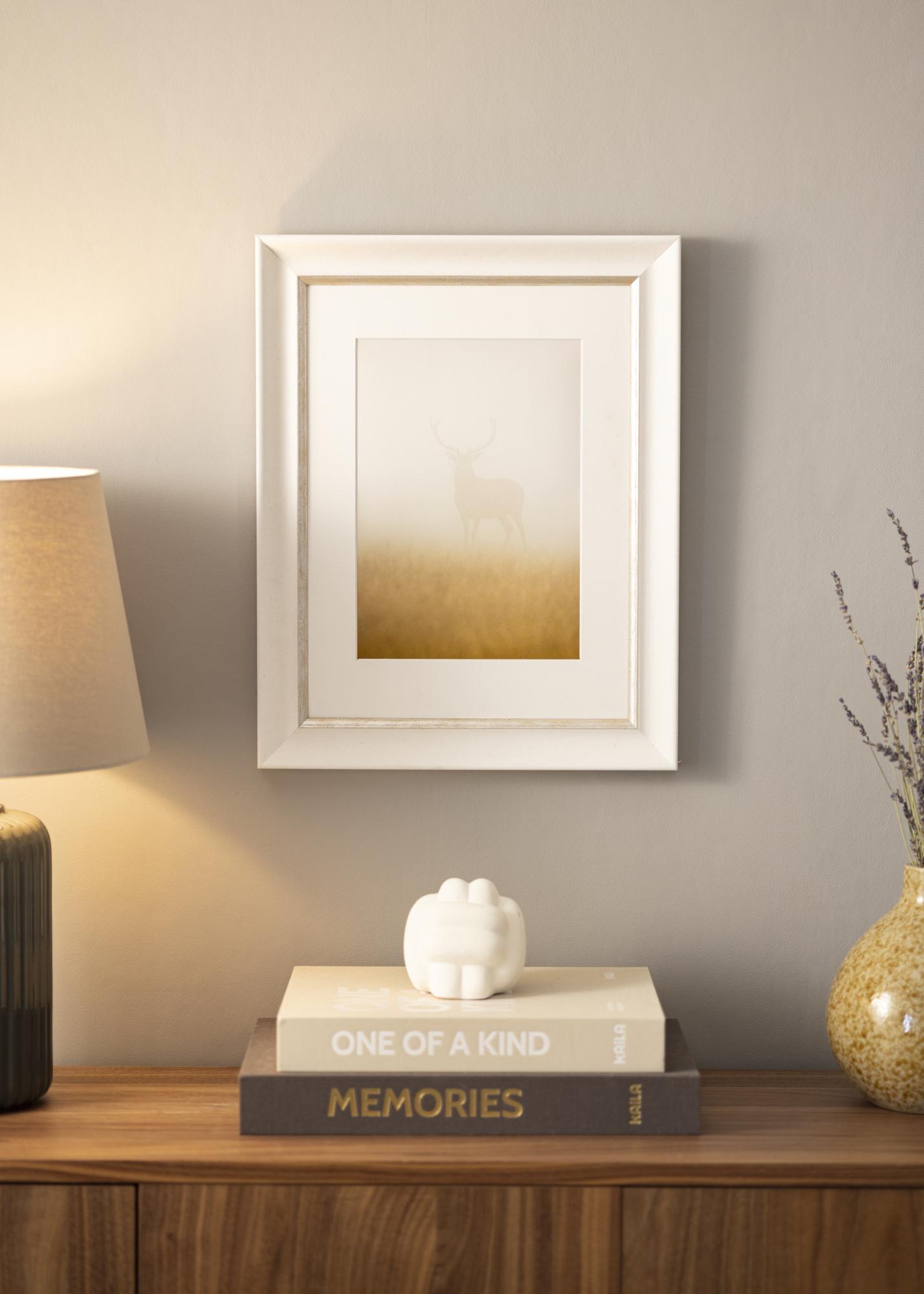 Tvirta rėmelė bet kurio dydžio su baltu klasikiniu profiliu. Arčiausiai motyvo yra elegantiškas sidabrinis kraštelis, suteikiantis rėmeliui papildomo blizgesio.