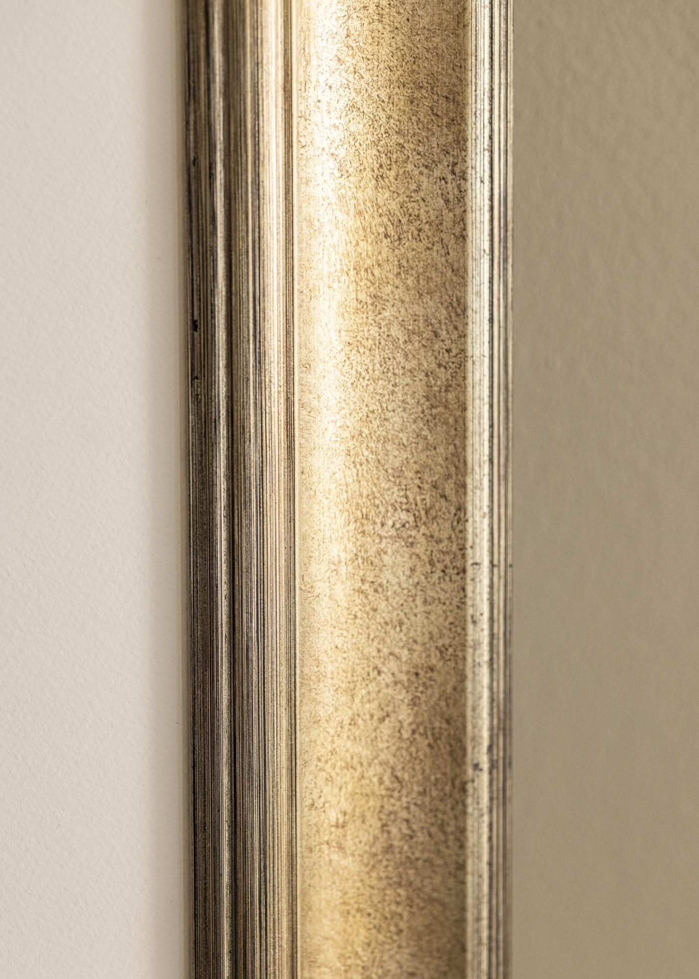 Plonos linijinės dekoracijos palei kraštus prisideda prie rėmo elegantiškos išvaizdos, o šepečiu gludintas paviršius su subtiliais spalvų pokyčiais išryškina jo gylį ir struktūrą. Tamsiai sidabrinė tonacija sukuria klasikinę ir nesenstančią atmosferą, kuri tinka daugumai interjerų stilių.