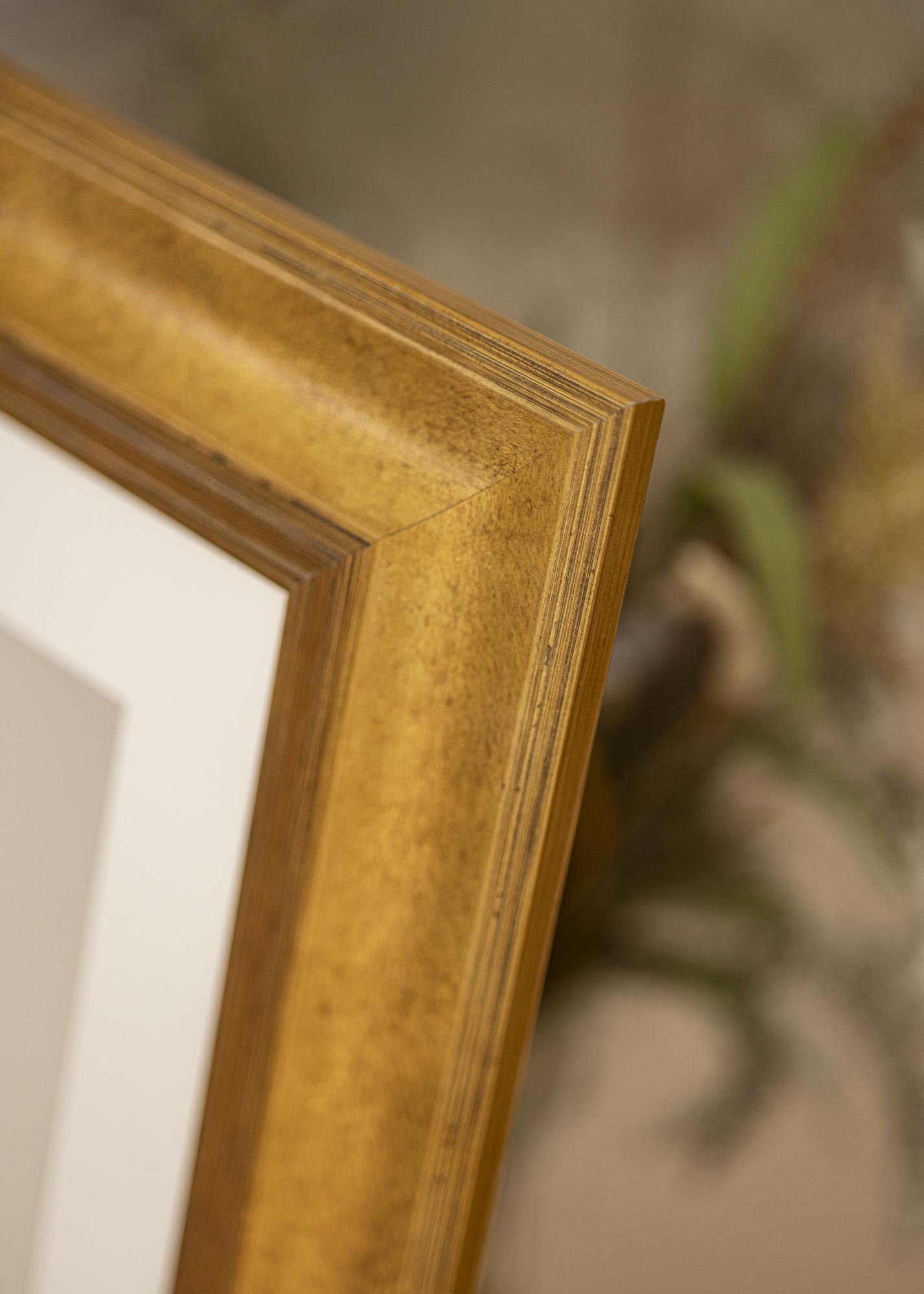 Rėmas pagamintas iš pušies, o išilgai kraštų yra plonos linijos, kurios prideda rafinuotą detalių gausą. Šilta aukso spalva suteikia nesenstančios elegancijos, kuri puikiai tinka tiek moderniose, tiek tradicinėse interjeruose. Kadangi kiekvienas paveikslų rėmas gaminamas pagal užsakymą mūsų pačių rėmų dirbtuvėje, galite būti tikri, kad gausite produktą, pritaikytą pagal jūsų specifinius poreikius.
