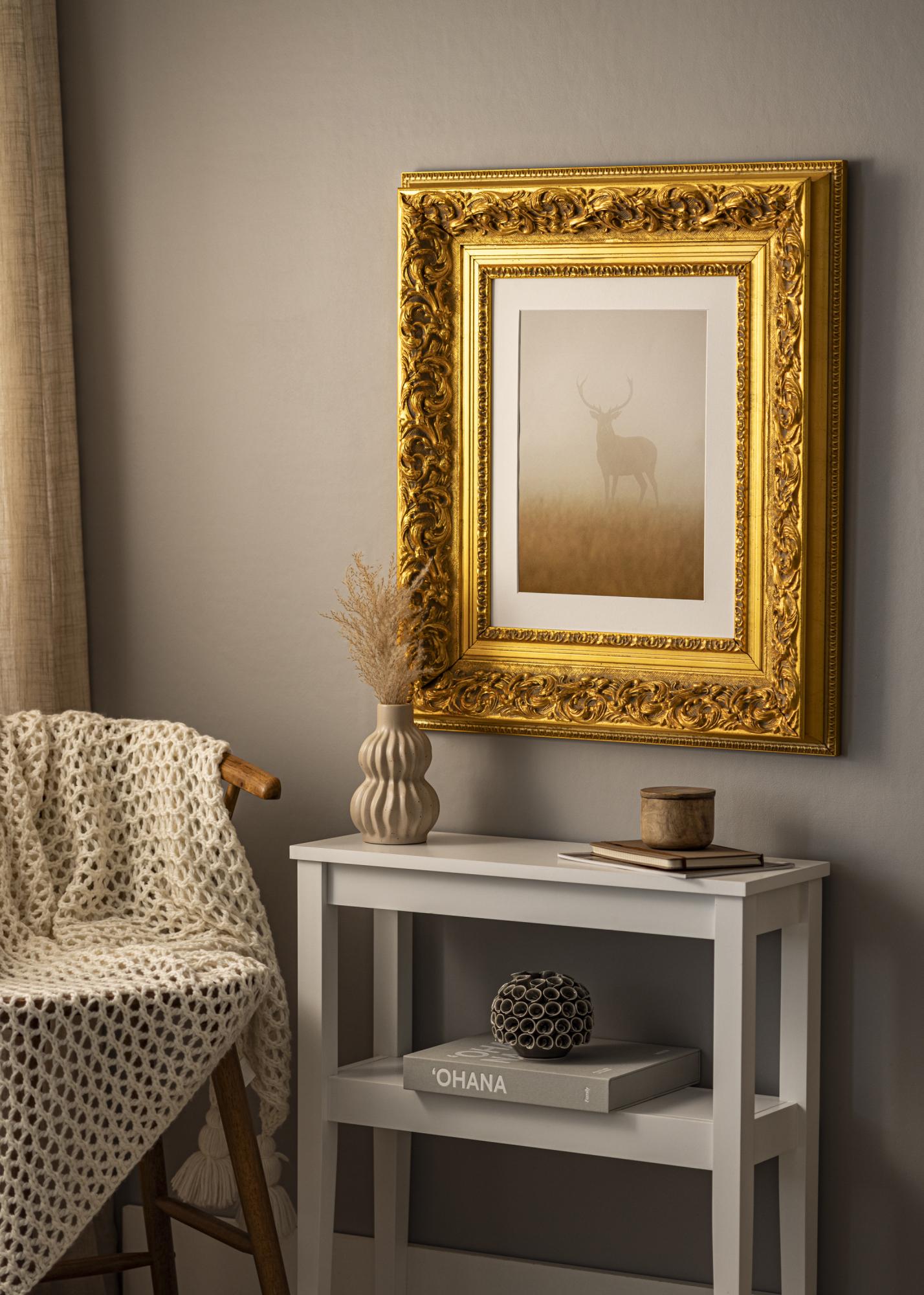 Mūsų Rėmas Birmingham Auksas yra pagal užsakymą pagamintas paveikslų rėmas, gaminamas mūsų pačių rėmelių dirbtuvėje. Su savo gilia auksine spalva ir klasikiniu baroko dizainu tai tampa elegantišku priedu bet kuriame kambaryje. Šis nuotraukų rėmelis turi 152 mm pločio rėmo juostą ir 74 mm gylį, suteikiančią įspūdingą buvimą ant sienos.