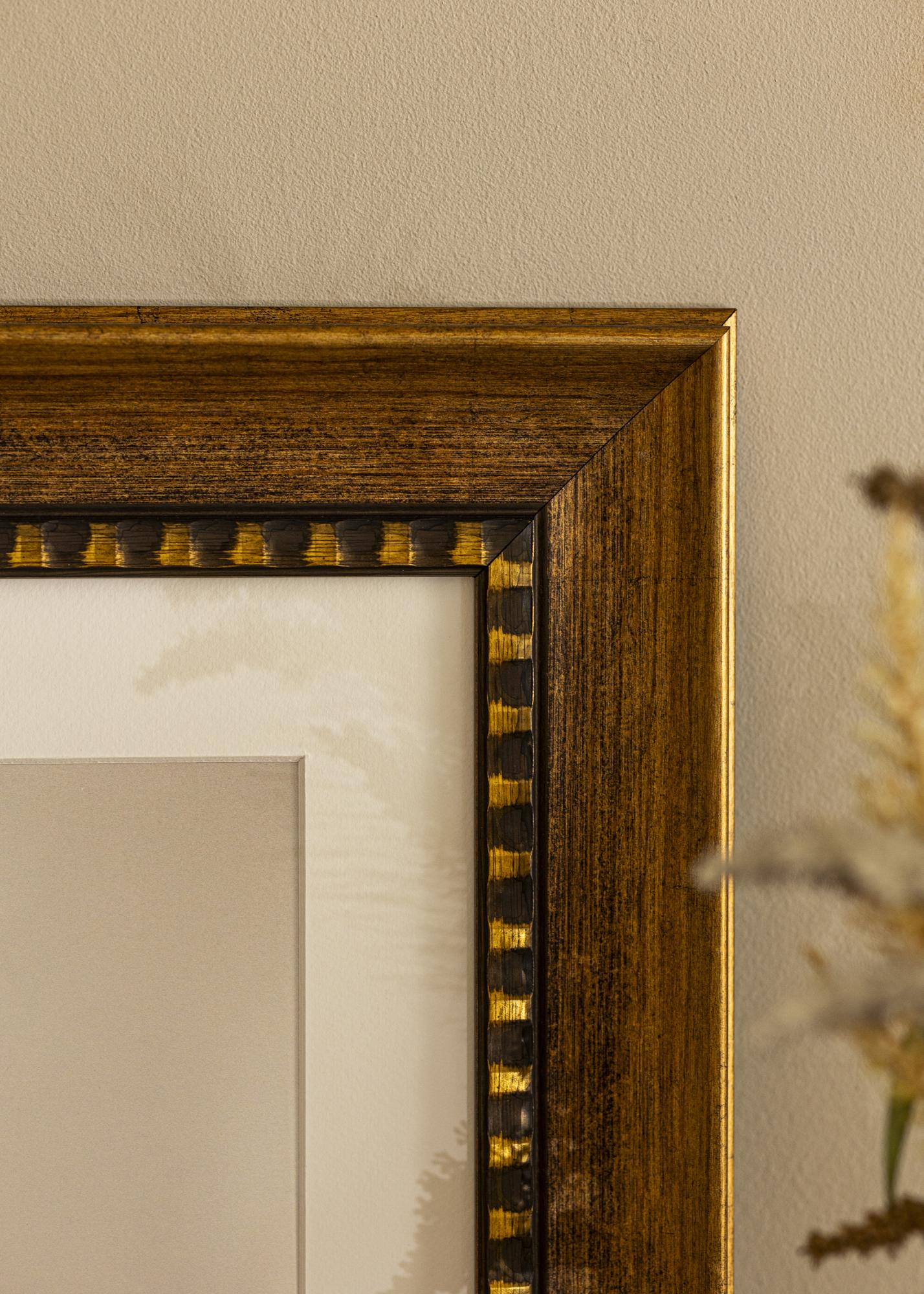 75 mm pločio rėmo juostelė turi subtilų blizgesį ir yra dekoruota išskirtine juostele aukso ir juodos spalvos palei vidinį kraštą. Tai suteikia rėmui unikalų charakterį ir daro jį idealiu pasirinkimu pabrėžti klasikinius ir tradicinius meno kūrinius. Matoma medžio struktūra suteikia kaimišką pojūtį, o švelnus aukso kraštas prideda elegancijos štricho.