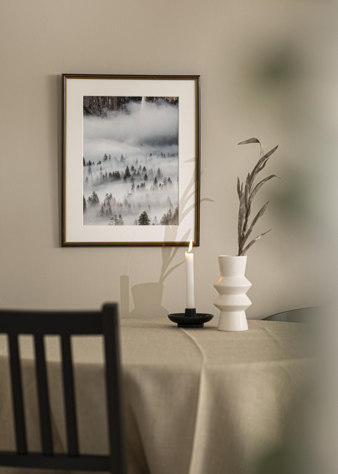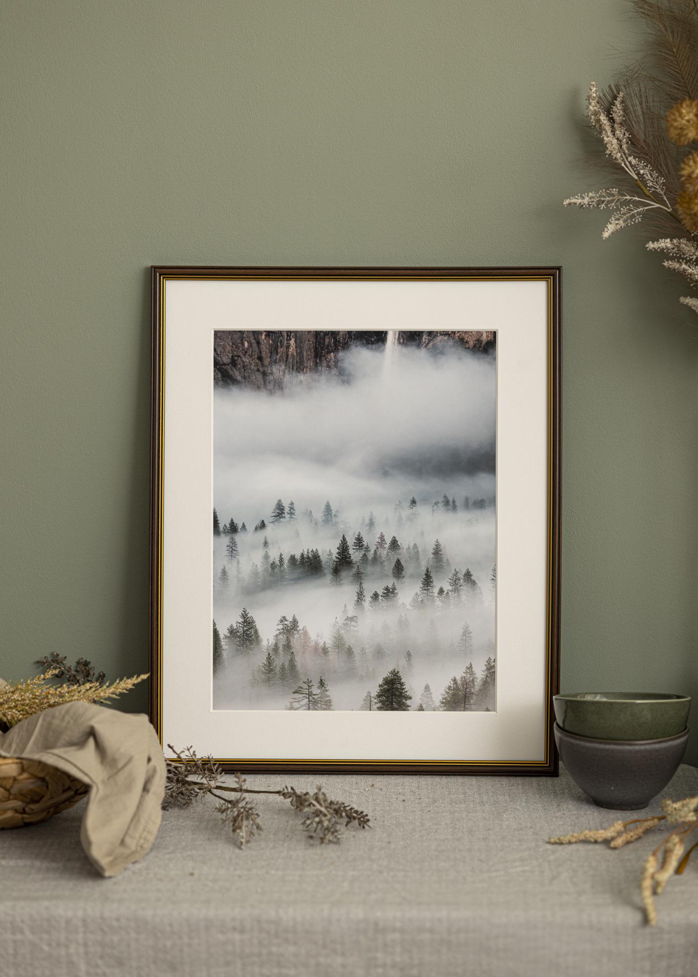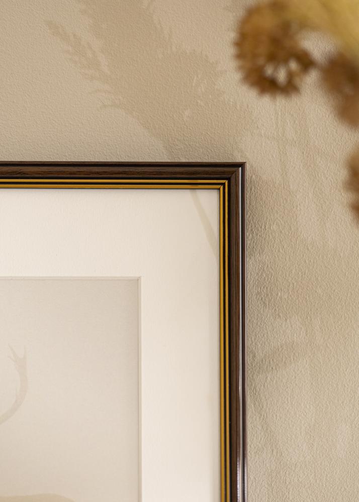 Jei ieškote klasikinės rėmelio tamsios medienos spalvos, „Klasikinis Riešutas“ yra puikus pasirinkimas. Rėmelis yra tamsios riešutmedžio spalvos ir turi dvi plonas auksinės spalvos linijas artimiausiai motyvui.