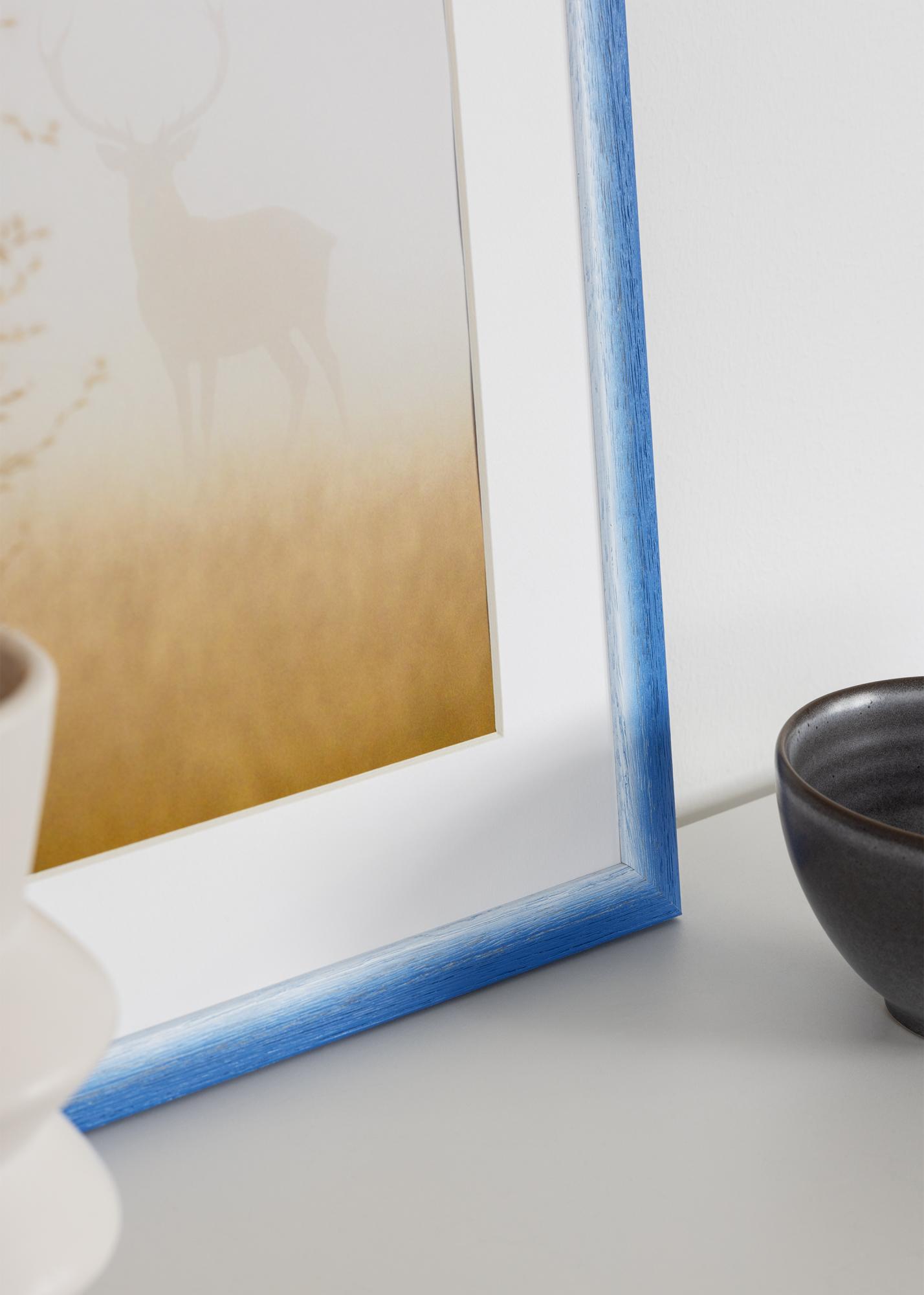 Švelnus mėlynas atspalvis išryškina natūralią medžio struktūrą, sukuriant harmoningą spalvos ir medžiagos balansą. Lygi danga ir tikslūs kampai suteikia minimalistinę išvaizdą, kuri puikiai dera tiek moderniuose, tiek skandinaviško stiliaus namuose. Rėmas turi metalinius pakabinimo laikiklius nugarėlėje, todėl jį lengva pakabinti tiek horizontaliai, tiek vertikaliai.