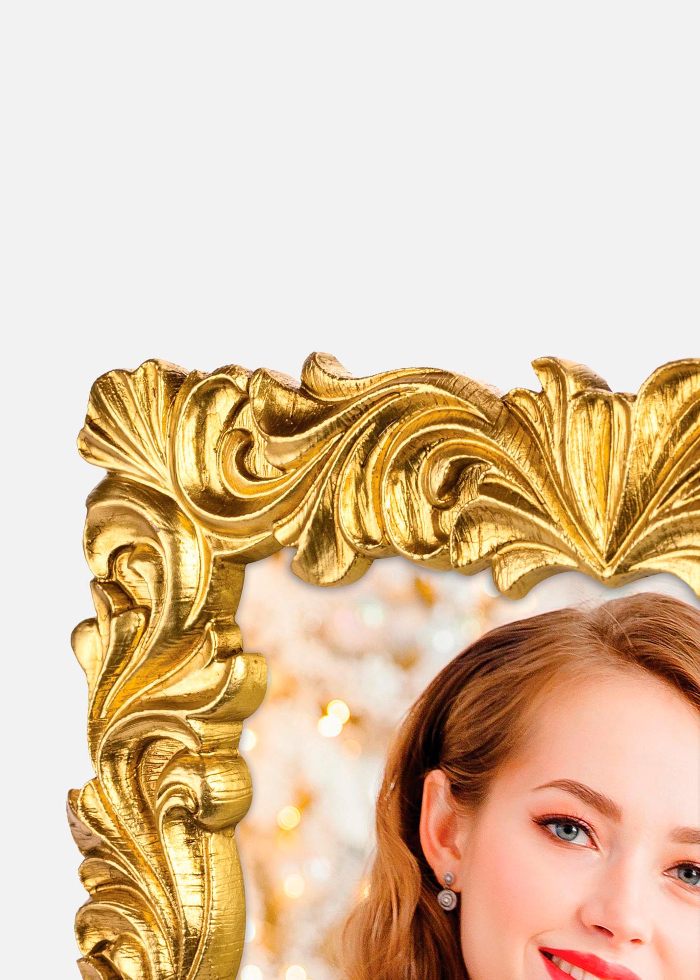 Auksinės spalvos apdaila šiame paveikslų rėmelyje suteikia šiltą ir kviečiančią blizgesį bet kuriam kambariui. Nesvarbu, ar dedate jį ant sienos ar ant stalo, šis rėmelis patrauks akį ir papildys jūsų interjerą savo išskirtiniu žavesiu.