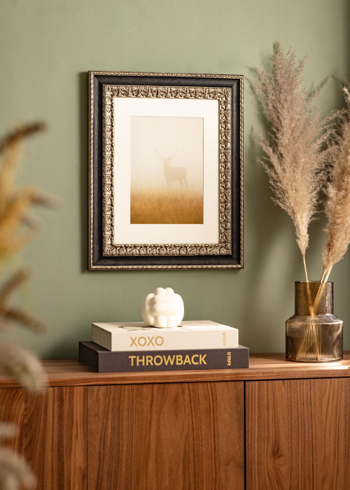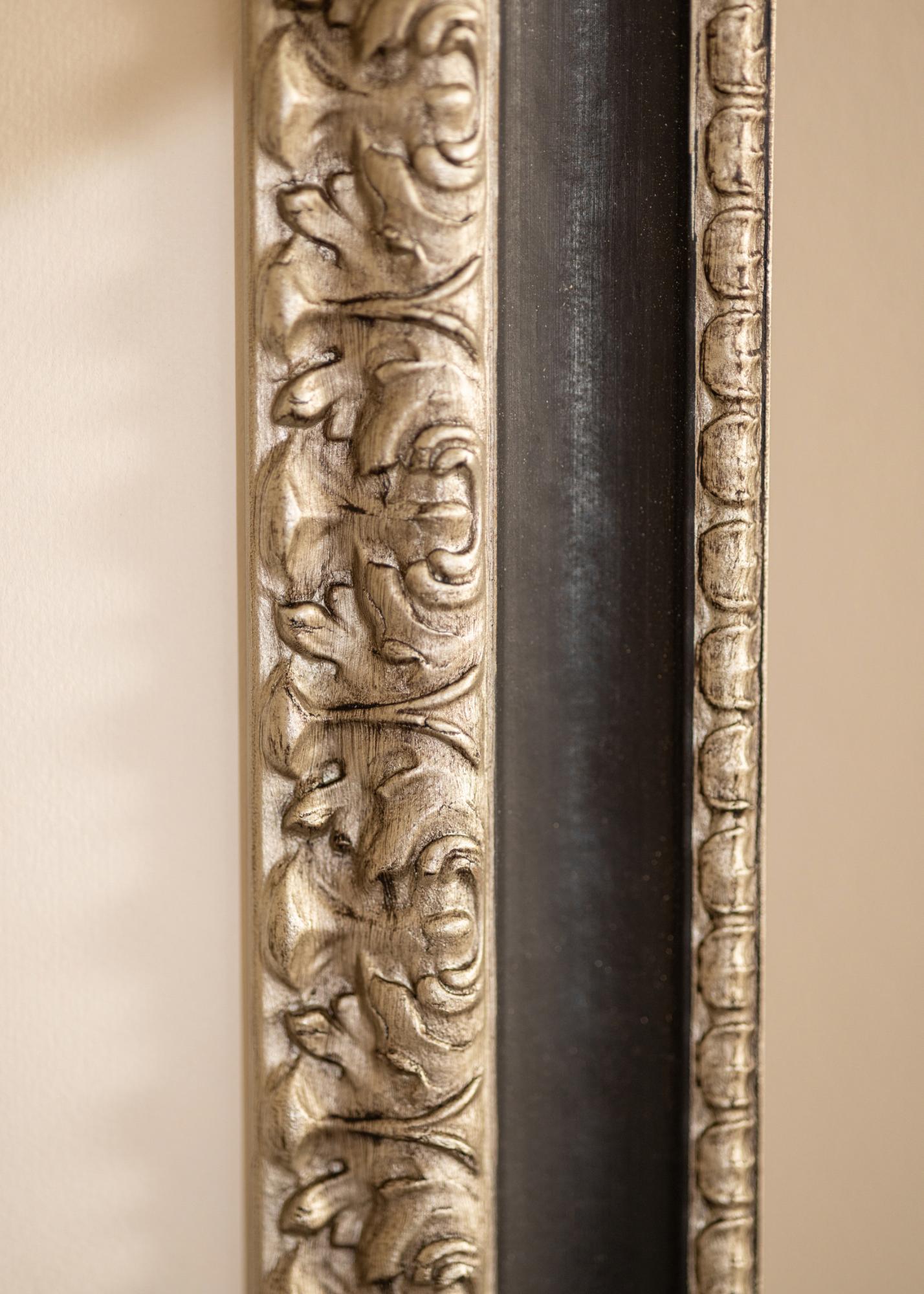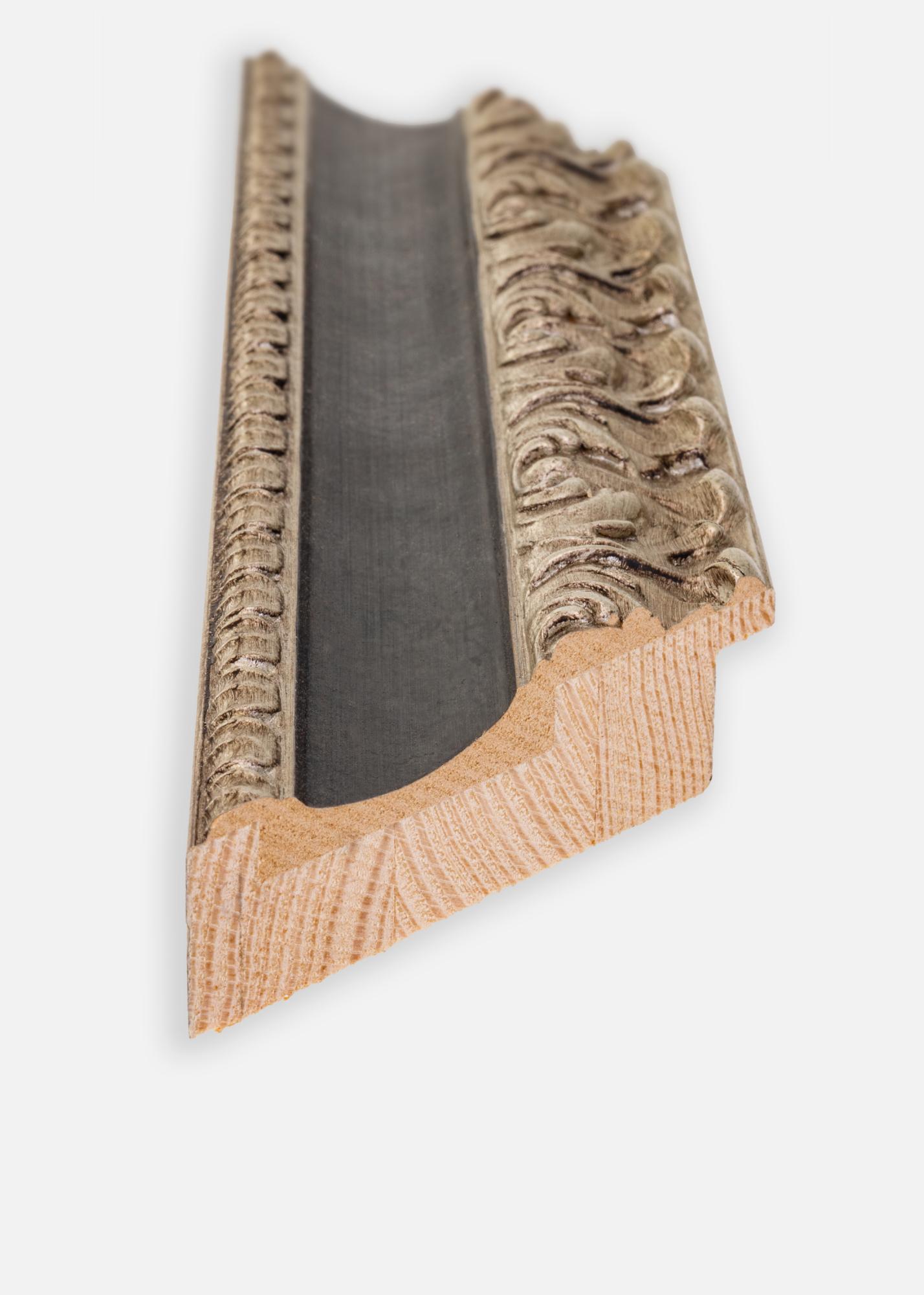 "Drottningholm Silver" yra gražus retro stiliaus rėmelis iš Italijos, pagamintas iš pirštų sujungto pušies medžio, rankomis dažytas. Rėmelis turi turtingą sidabro profilį su plačiu juodu kraštu, suteikiančiu jam elegantišką išvaizdą. Puikiai tinka visų tipų retro stiliaus rėminimui.