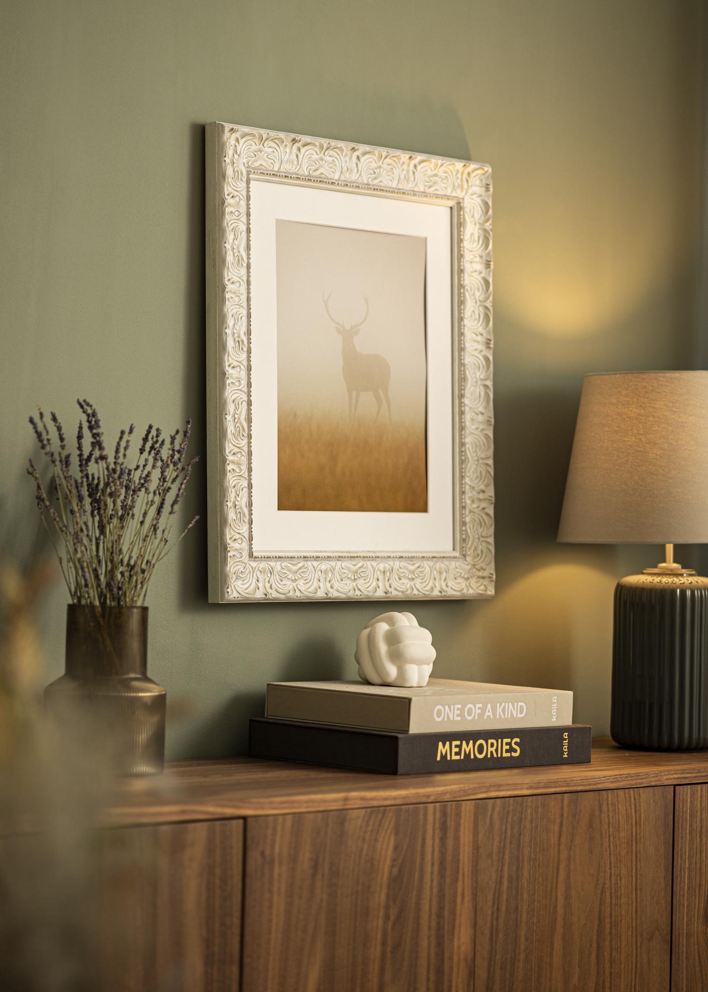 Rėmelis Durham Baltas yra elegantiškas ir klasikinis paveikslų rėmelis, suteikiantis jūsų nuotraukoms laikui nepavaldų rėminimą. Su savo antikine balta spalva ir dekoratyvine reljefine linija jis sukuria rafinuotą atmosferą bet kuriame kambaryje. Subtiliai nutriušusi apdaila suteikia nuotraukų rėmeliui unikalų charakterį ir sustiprina jo klasikinę išraišką, todėl jis tampa puikiu pasirinkimu tiek šiuolaikinėms, tiek tradicinėms interjerams.