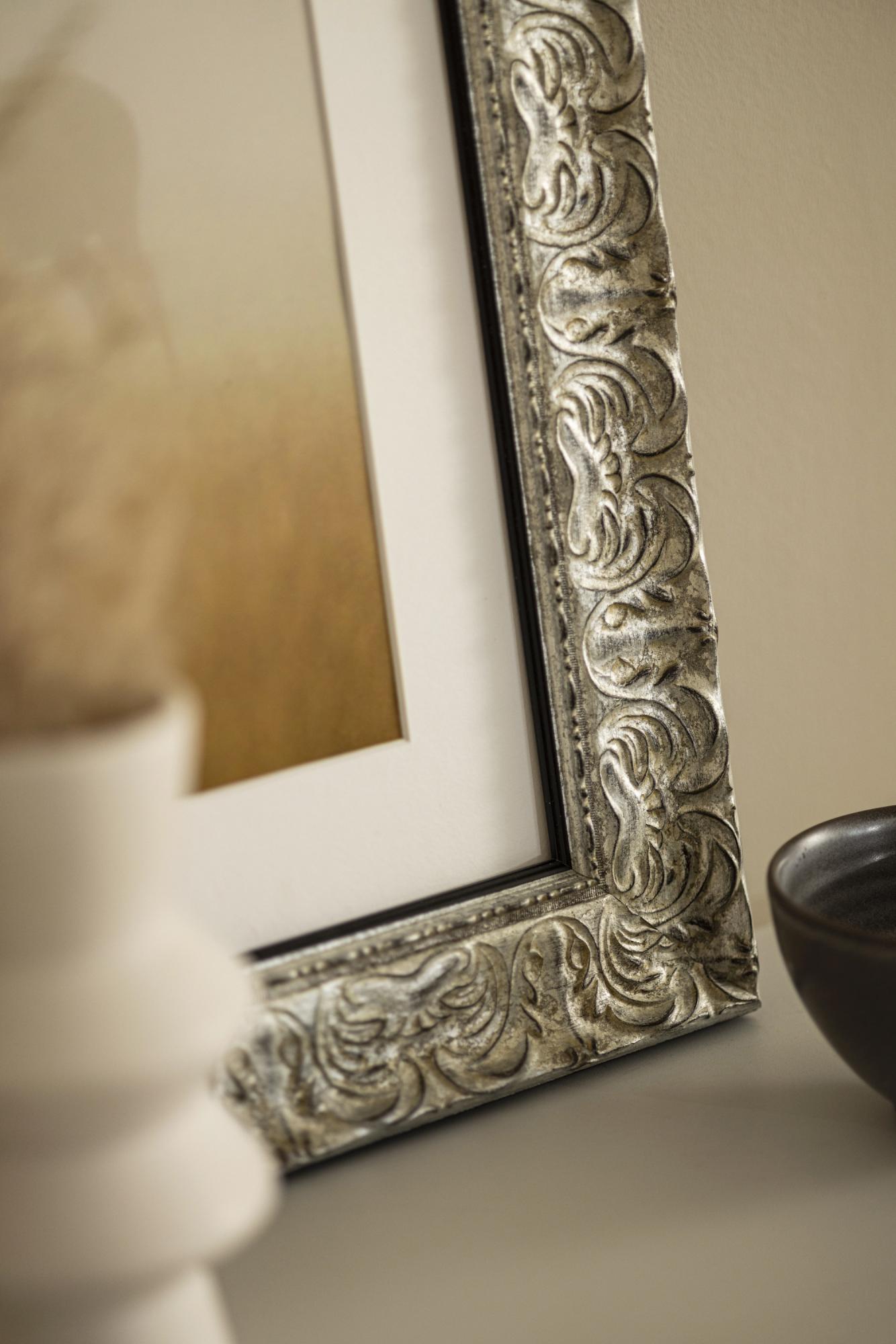 Rėmas Durham Silver yra elegantiškas ir stilingas nuotraukų rėmas, suteikiantis jūsų nuotraukoms rafinuotą įrėminimą. Su sidabrine danga ir antikvariniu apdaila jis sukuria rustic, bet modernų jausmą jūsų namuose. Ornamentuotas reljefas rėmo paviršiuje suteikia jam unikalų charakterį ir padaro jį puikiu pasirinkimu pabrėžti jūsų mėgstamiausias fotografijas ar meno kūrinius.