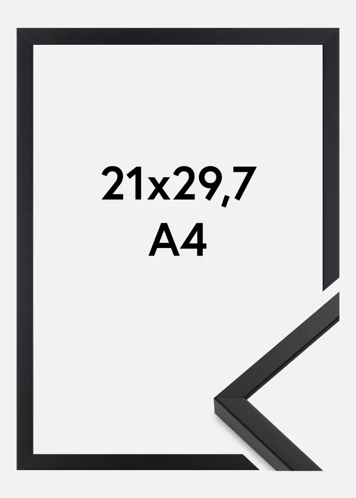 Suteikite savo mėgstamiems vaizdams dėmesio, kurio jie nusipelno, su šiuo elegantišku juodu nuotraukų rėmeliu. Dydis 21x29,7 cm (A4) puikiai tinka jūsų gražiausiems A4 spausdiniams. Rėmelio plonas dizainas su 12 mm pločio rėmelio juosta papildo bet kokio tipo interjero stilius.