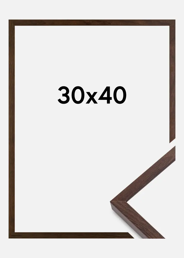 Paveikslo rėmas pagamintas iš aukštos kokybės pušies ir turi matinių paviršių, kuris papildo riešutmedžio raštą. Rėmo juostelės plotis yra 12 mm, suteikiantis gražią įrėminimo išvaizdą nesudvasinant, o 20 mm gylis sukuria išskirtinį profilį ant sienos.
