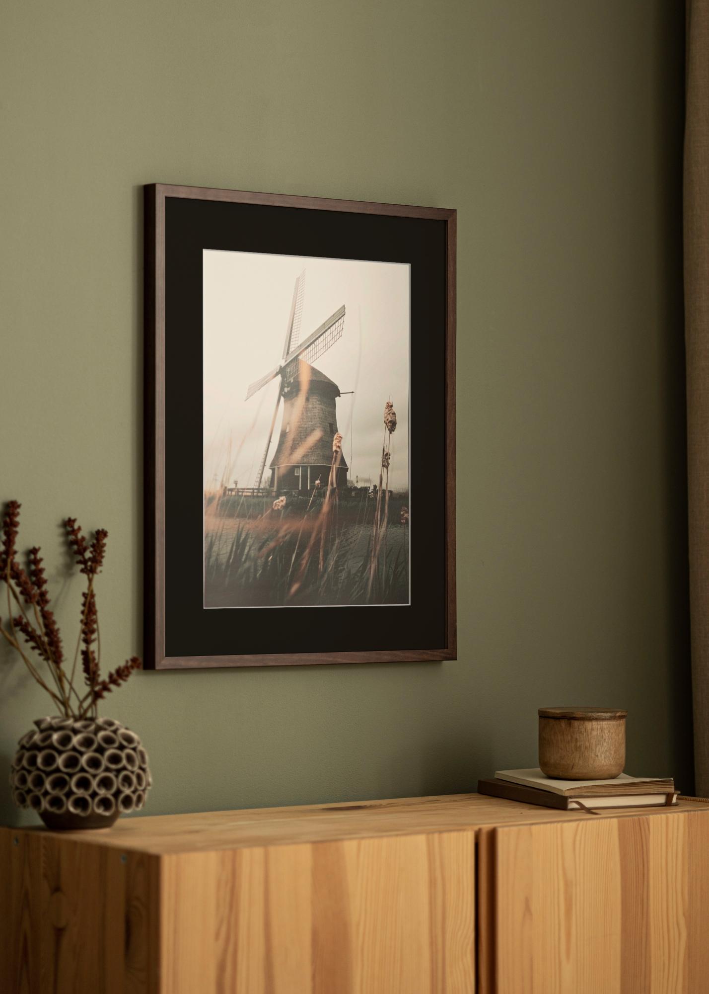 Patirkite eleganciją ir rafinuotumo jausmą su mūsų išskirtiniu rėmeliu su pasportu. Juoda pasporta suteikia jūsų A4 formato paveikslui gilų ir dramatišką kraštą, kuris įspūdingai pabrėžia meno kūrinį. Rėmelio natūrali medžio spalva dera su bet kokiu interjeru, o jo siauras 12 mm plotis suteikia modernų akcentą neperimdama vyraujančios išvaizdos.