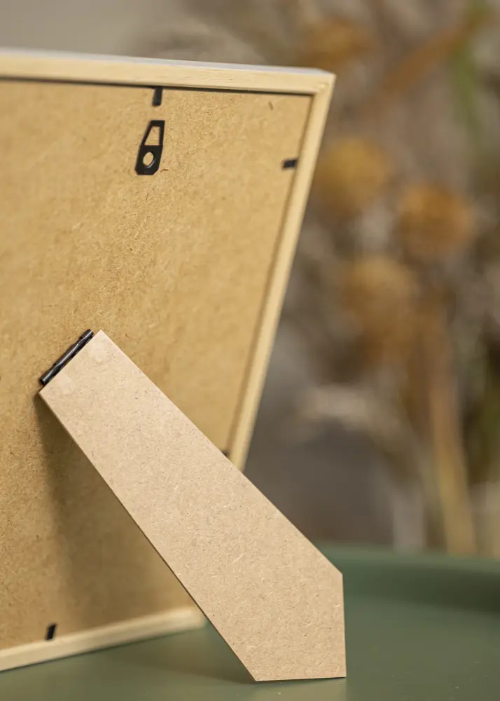 Galinis paviršius, pagamintas iš MDF, laikomas vietoje mažų metalinių smeigtukų, kuriuos lengvai pakeliate, kai montuojate savo vaizdą. Galinis paviršius turi kabinimo kilputes, todėl galite pasirinkti, ar rėmą pakabinti vertikaliai, ar horizontaliai.