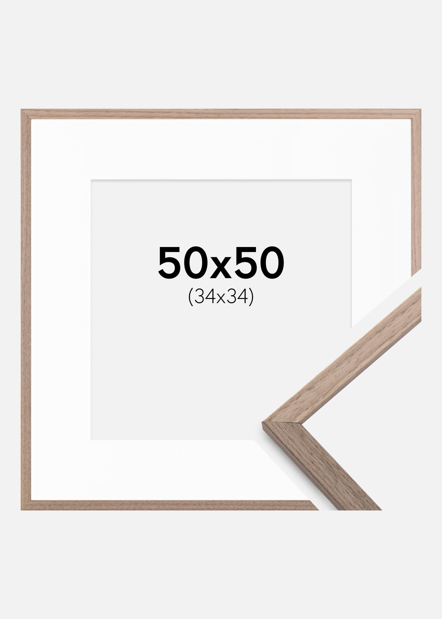 Rėmo plona 13 mm profilio pločio ir 11,5 mm gylio linija sukuria subtilų įrėminimą, netraukiant dėmesio nuo motyvo. Matinė apdaila papildo baltą kartoną ir prisideda prie rafinuotos prezentacijos.