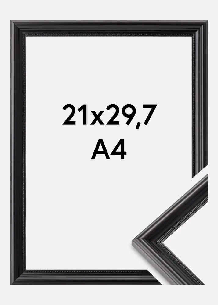 Atraskite eleganciją ir nesenstančią dizainą su mūsų juodu nuotraukų rėmeliu, kurio dydis 21x29,7 cm (A4). Šis paveikslų rėmas puikiai tinka pabrėžti jūsų mėgstamiausias nuotraukas ar meno kūrinius su savo profiliuota rėmo juosta retro stiliuje. 20 mm pločio rėmo juosta kompensuojama 17 mm gyliu, kuris suteikia išskirtinį ir patrauklų kraštą jūsų įrėmintai nuotraukai.
