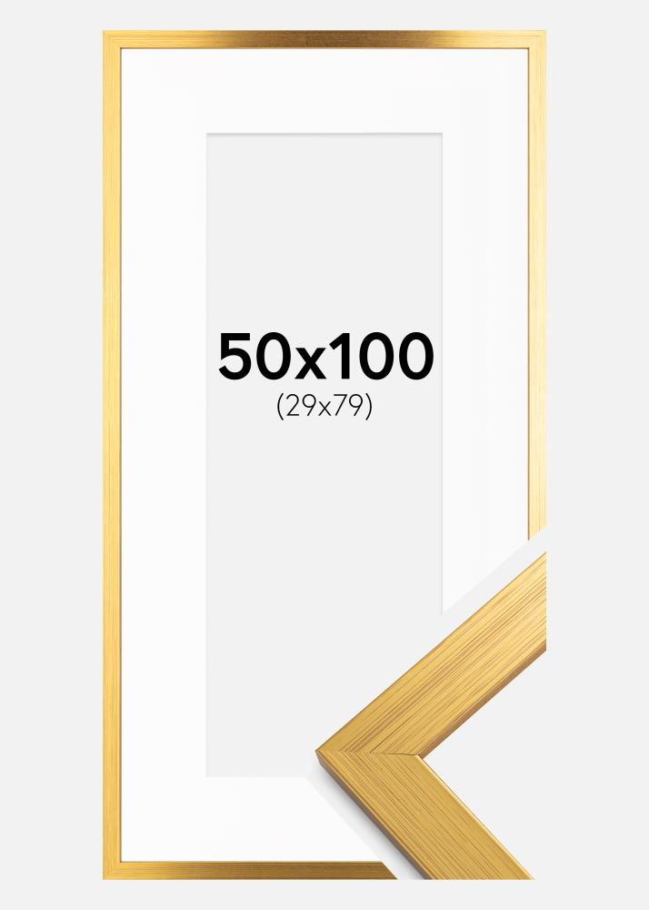 Suteikite savo nuotraukoms dėmesio, kurio jos nusipelno, su elegantišku auksiniu rėmeliu su balta paspartu. Šis paveikslo rėmas, kurio išoriniai matmenys yra 53,4x103,4 cm, puikiai tinka akcentuoti jūsų nuotraukai, kurios dydis 30x80 cm. Paspartu suteikia gylio ir profesionalumo pojūtį, kuris išryškina motyvą ir apsaugo jį nuo sąlyčio su stiklu.