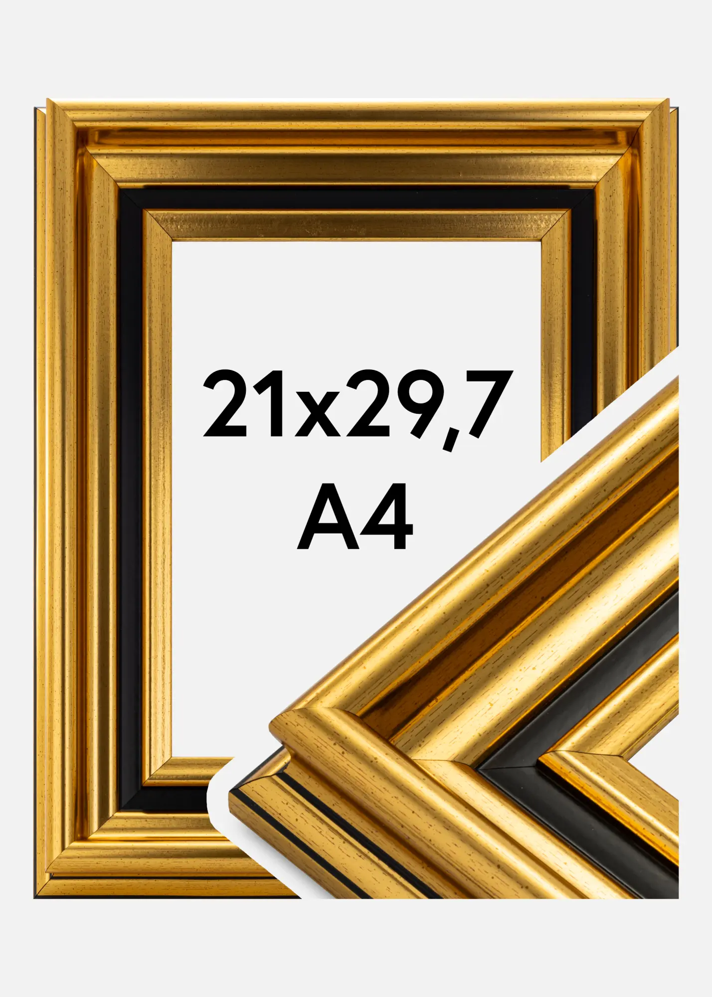 Gysinge yra gražus auksinis rėmas su ypač plačiu profiliu, kuris visada atkreipia dėmesį. Aplink motyvą yra ir juoda juosta, kuri dar labiau sustiprina rėmo gražų profilį. Puikiai tinka, kai ieškote ko nors išskirtinio savo geriausioms nuotraukoms. Gysinge Gold yra vienas iš mūsų mėgstamiausių šeimos nuotraukoms, kai ieškote tikrai išskirtinio rėmo.