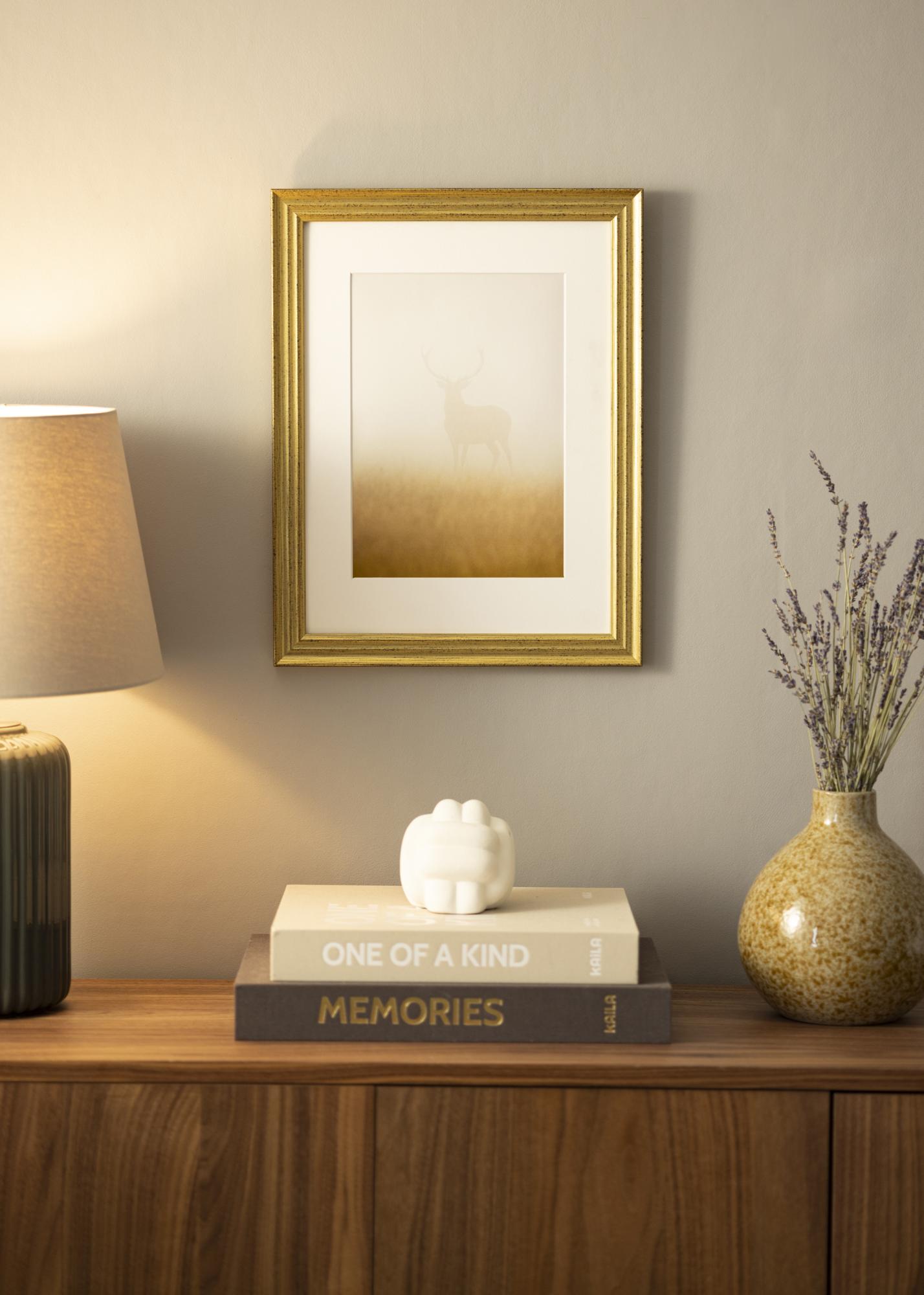 Kai ieškote prabangaus auksinio rėmo retro stiliumi, "Heby Guld" yra akivaizdus pasirinkimas. Su savo žavinga senovinio stiliaus auksine spalva ir solidžiu profiliu "Heby Guld" yra vienas iš mūsų geriausiai parduodamų rėmų šeimos nuotraukoms ir kitoms jūsų mėgstamoms nuotraukoms. Pasirinkdami dydį, galite tiksliai pritaikyti norimą dydį savo naujam gražiam rėmui.