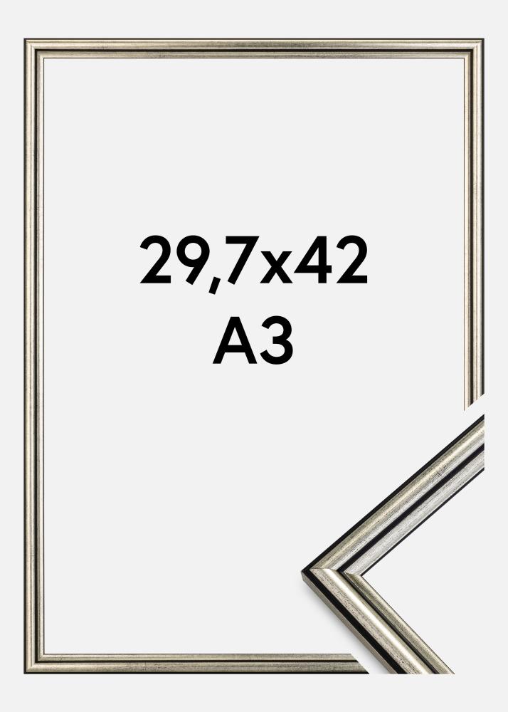 Atraskite eleganciją ir modernų dizainą su mūsų 29,7x42 cm (A3) sidabriniu rėmu, kuris puikiai pabrėžia jūsų mėgstamus meno kūrinius ar fotografijas. Šis nuotraukų rėmelis yra stilingas sidabro atspalvių derinys su subtiliomis juodais taškeliais ir juodomis linijomis, kurios suteikia rafinuotą įspūdį.
