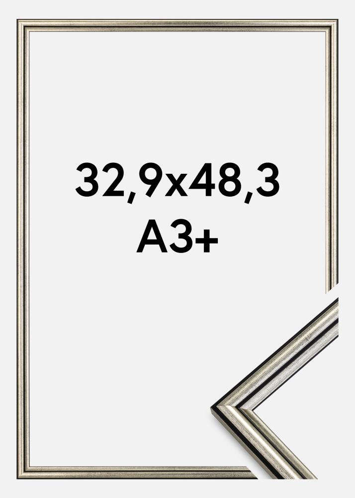 Atraskite elegantišką sidabro rėmą, kurio matmenys yra 32,9 x 48,3 cm (A3+), puikus stiliaus ir funkcionalumo derinys jūsų mėgstamiausiems nuotraukoms ar meno kūriniams. Ši nuotraukų rėmelių linija yra specialiai sukurta suteikti rafinuotą įspūdį su juodos spalvos taškeliais ir juodomis linijomis, kurios subtiliai pabrėžia rėmelių dizainą.