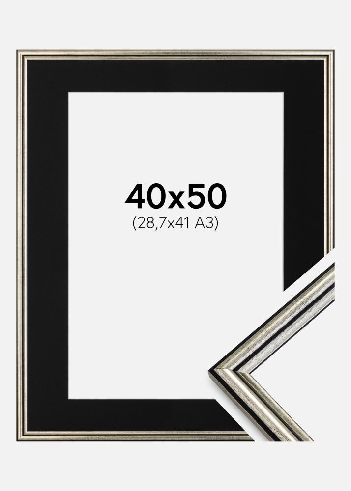 Rėmas Horndal Sidabras 40x50 cm - Paspartu Juodas 29,7x42 cm (A3)