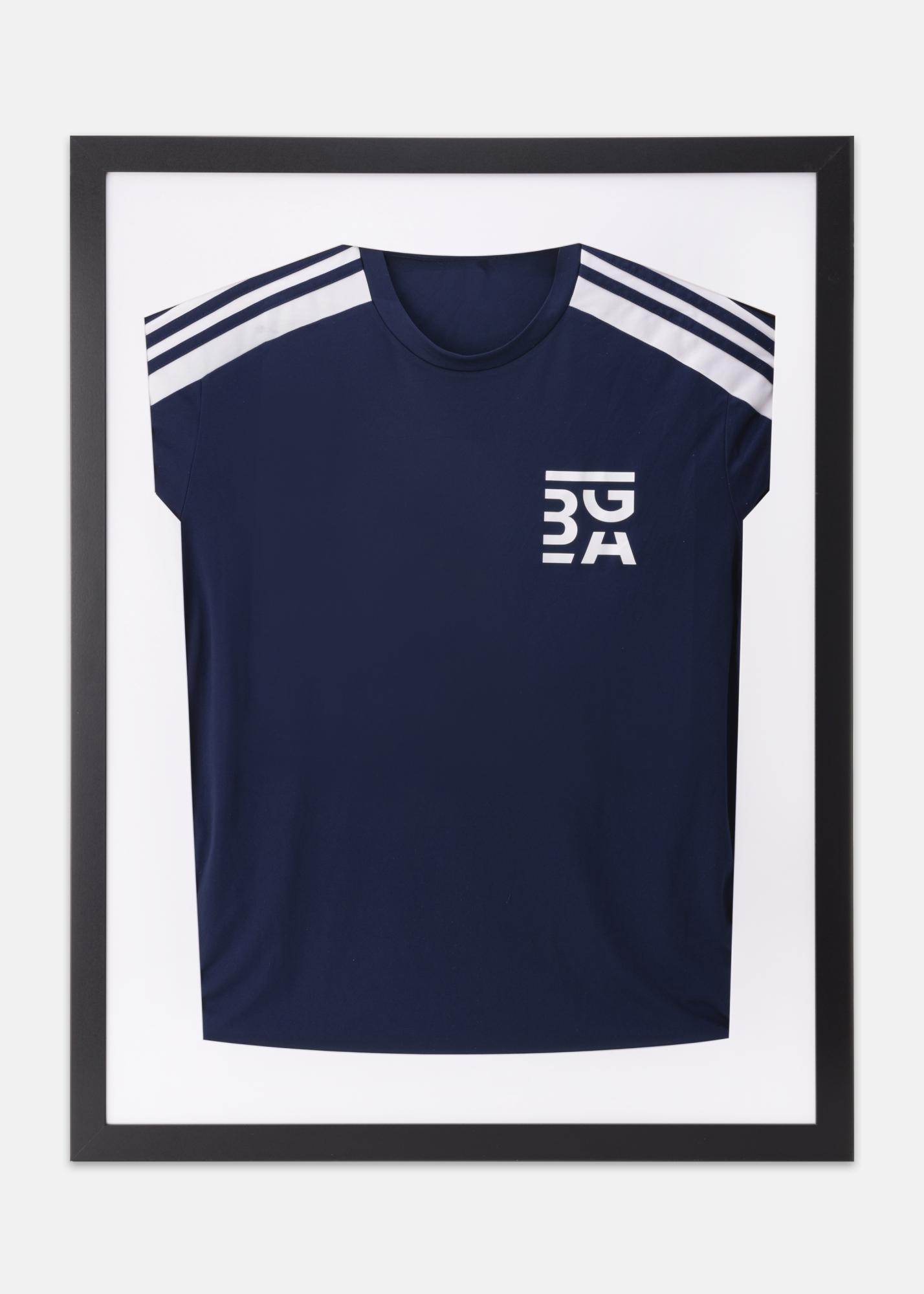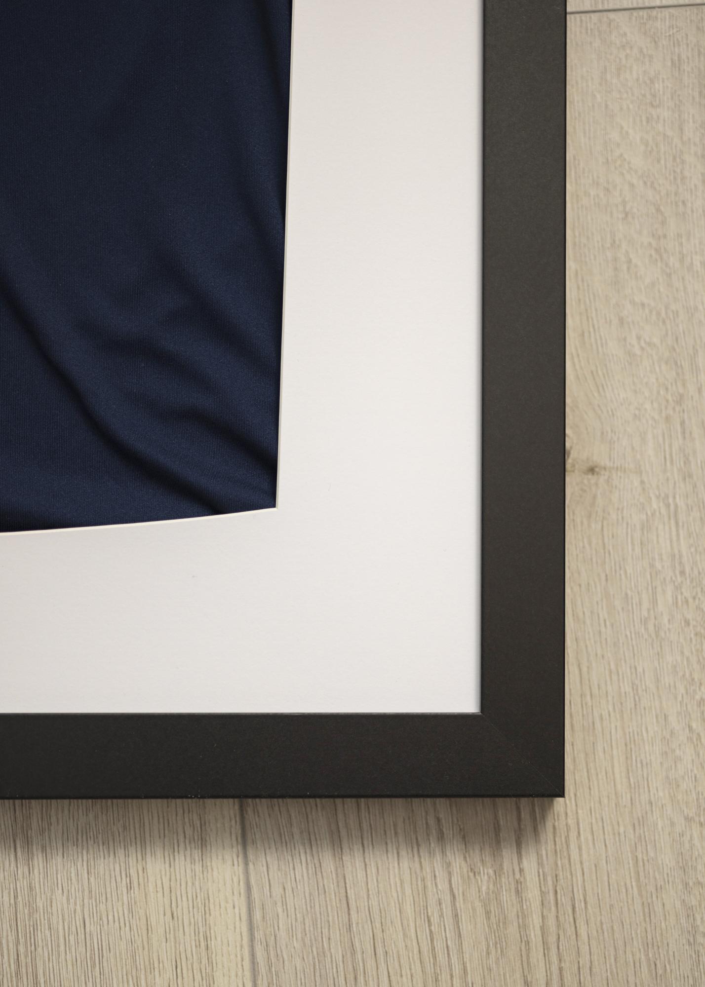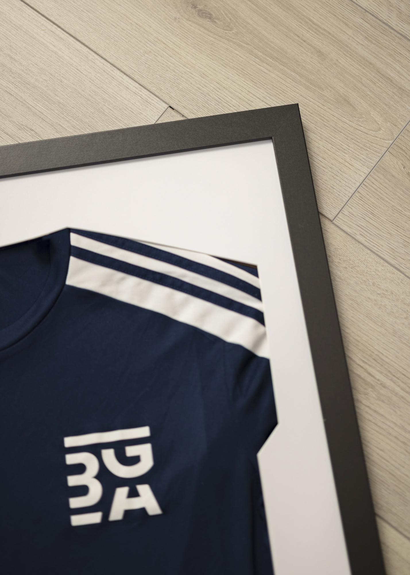 Su juodu rėmu ir baltu fonu sukuriate puikią sąlygą pabrėžti komandos marškinėlių spalvas. O kodėl gi neįrėminus kitų prisiminimų, tokių kaip vaikų pirmieji drabužiai ar mylimojo atlikėjo marškinėliai?