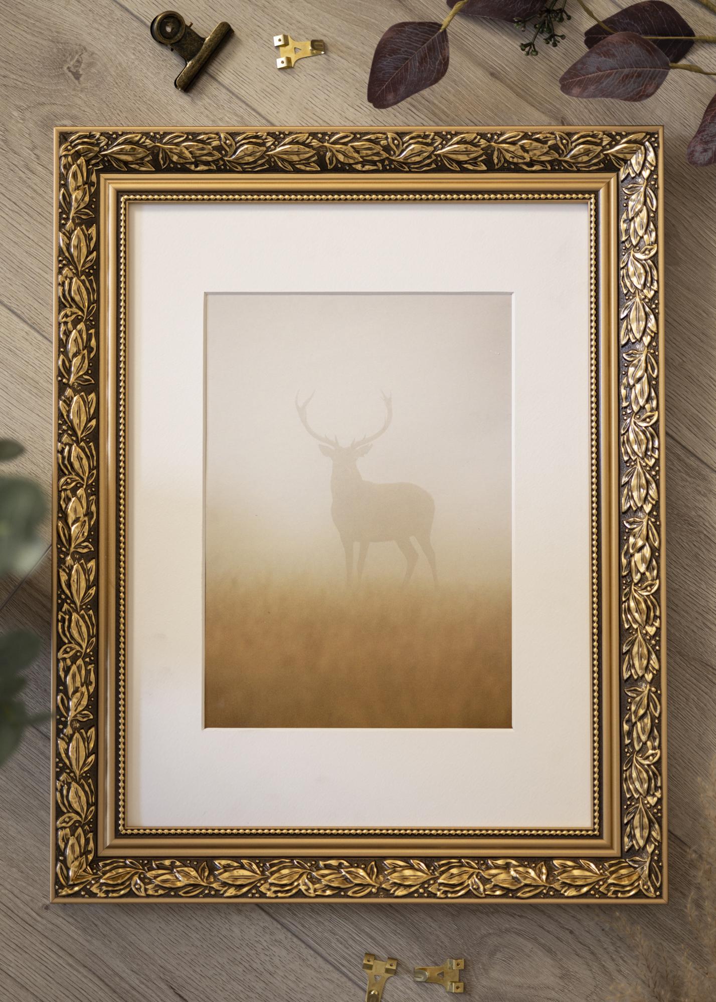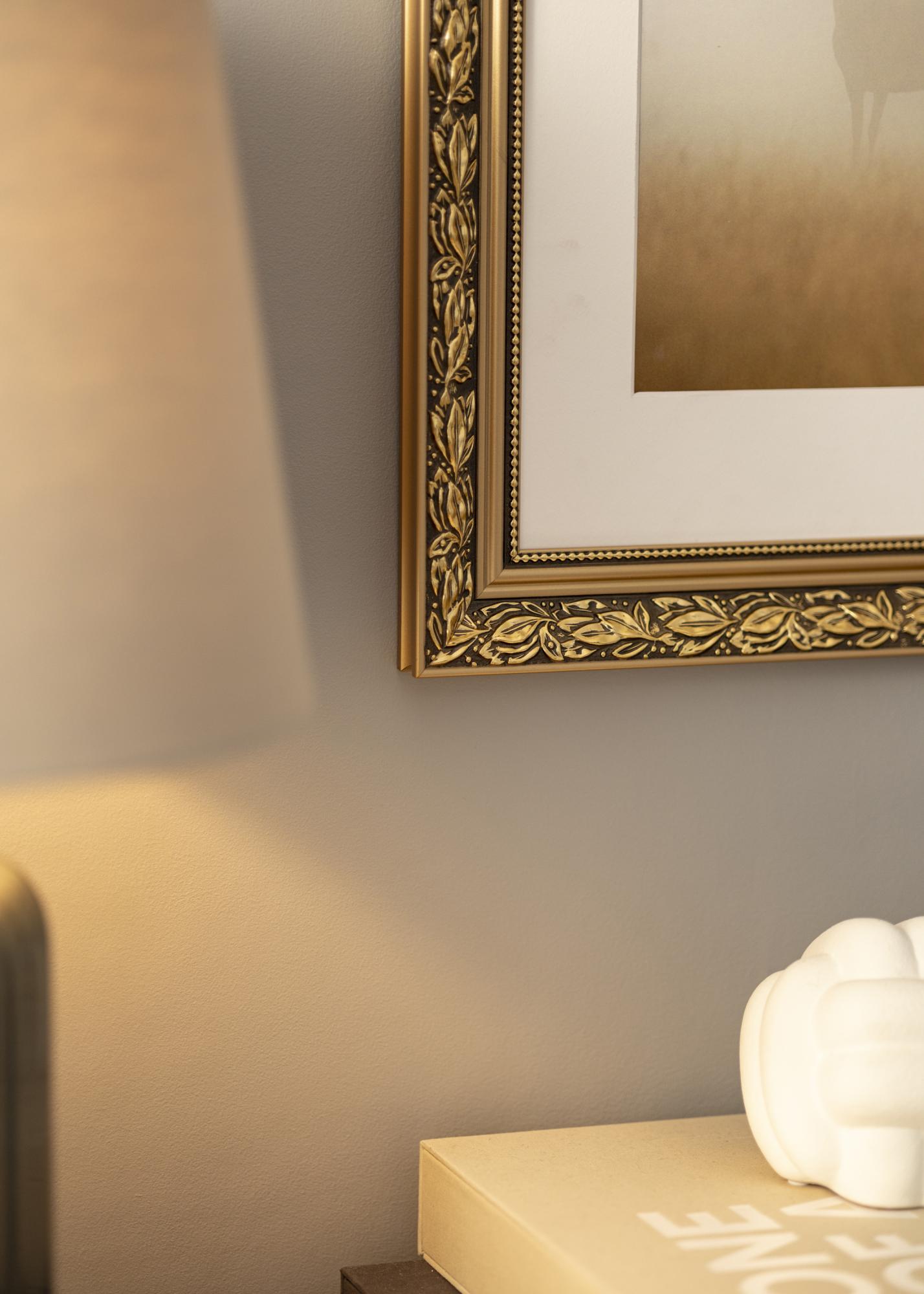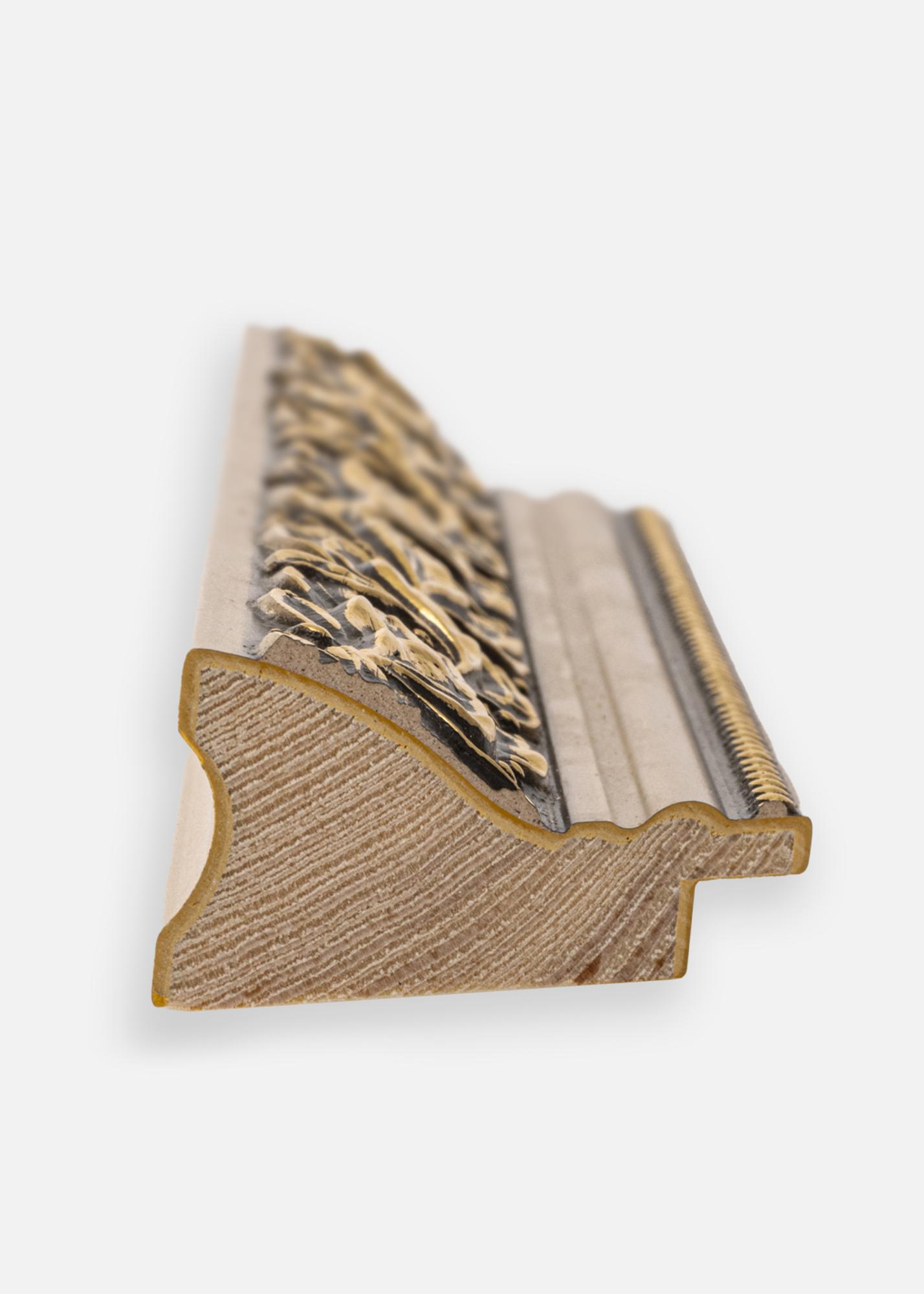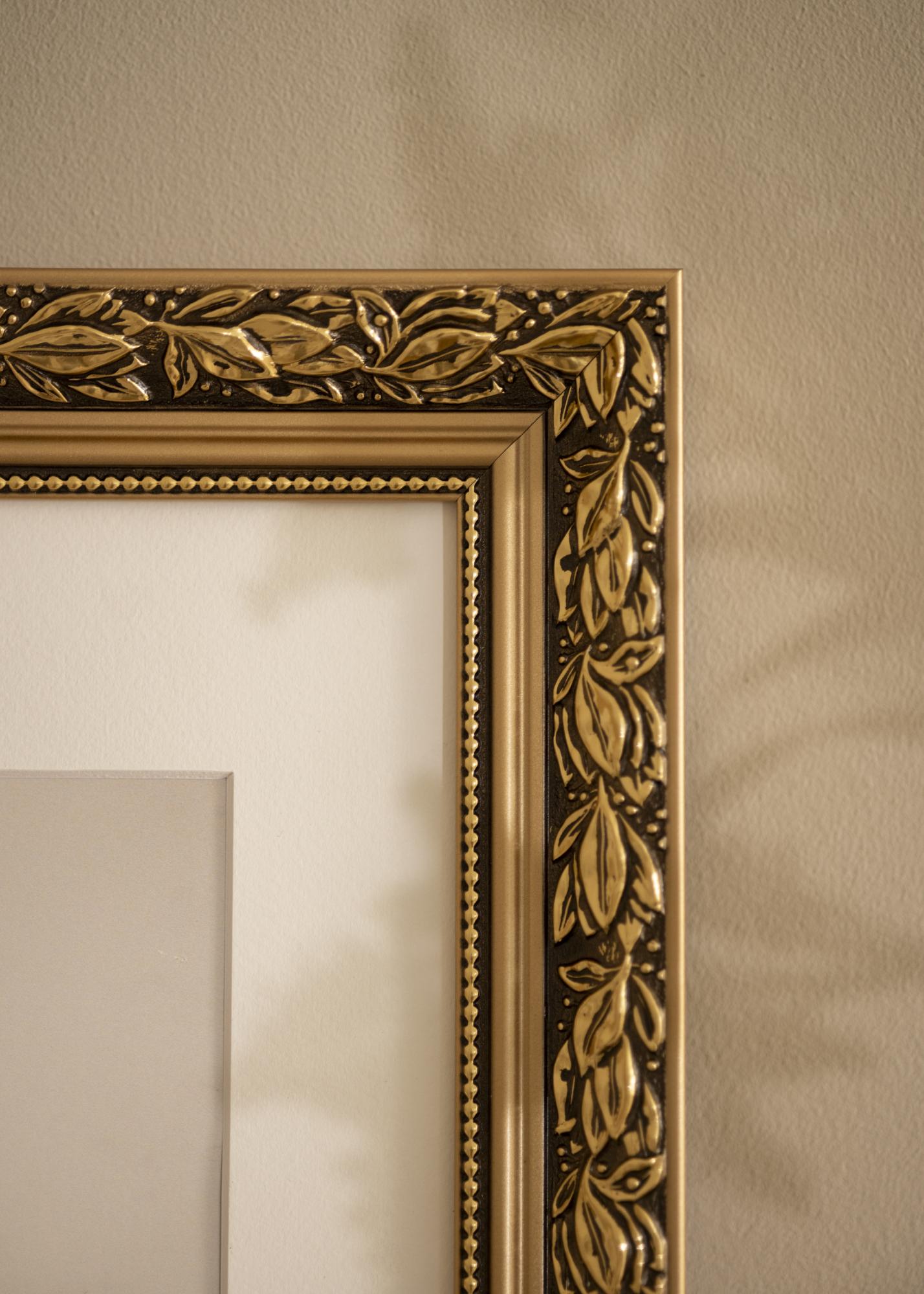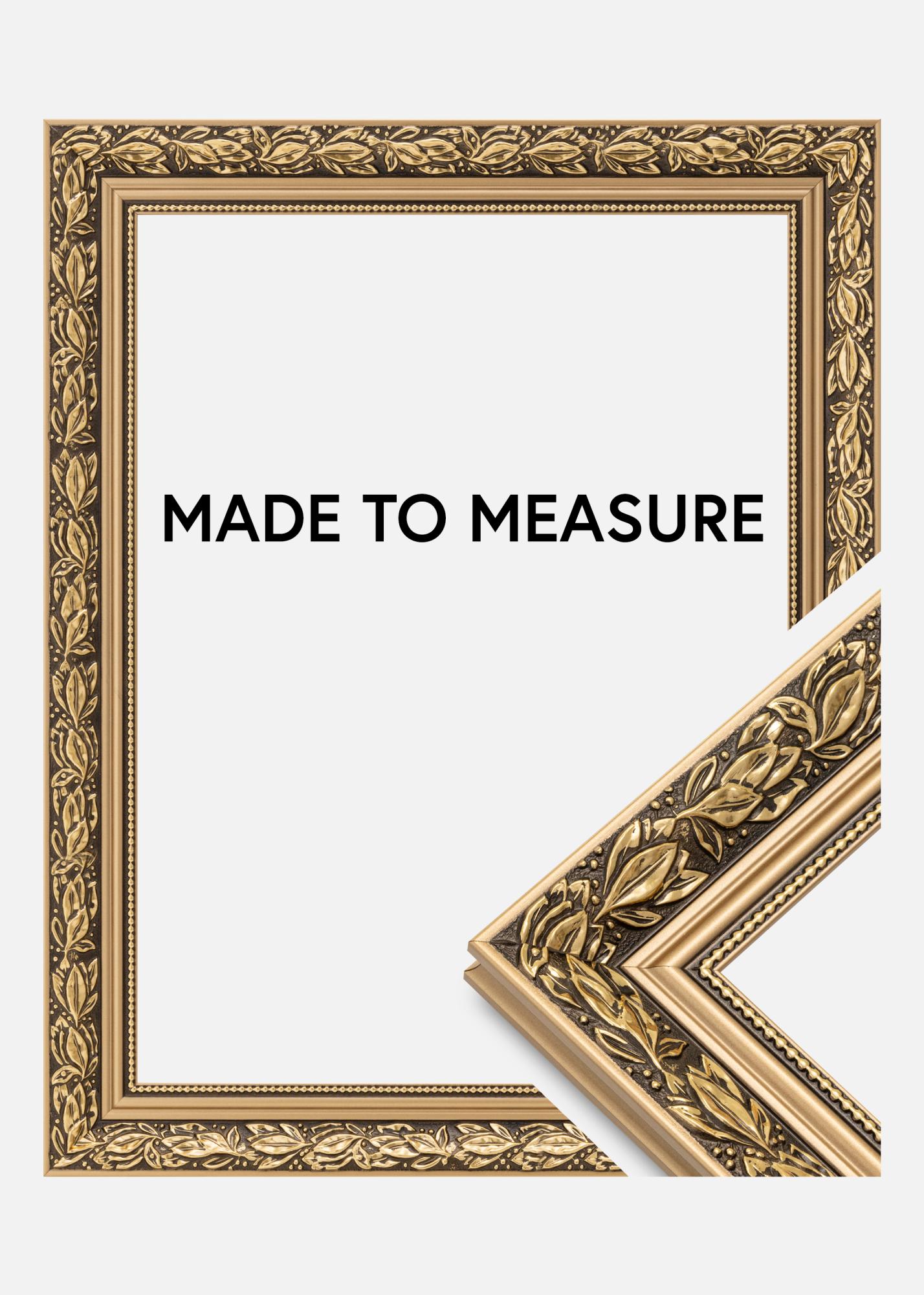 Vertinga nuotrauka nusipelno gražaus rėmo! Čia turime romantiškai suprojektuotą paveikslo rėmą su auksinės spalvos kraštais, vingriais aukso lapų raštais ant rudo fono ir miela aukso juosta su perlo formomis prie pat stiklo. Naudokite jį senai juodai baltai nuotraukai, kurią paveldėjote, arba sukurkite įdomų kontrastą su naujai padaryta nuotrauka. Kadangi rėmas gaminamas pagal jūsų matmenis, galite būti tikri, kad jis tiks būtent ten, kur norite!