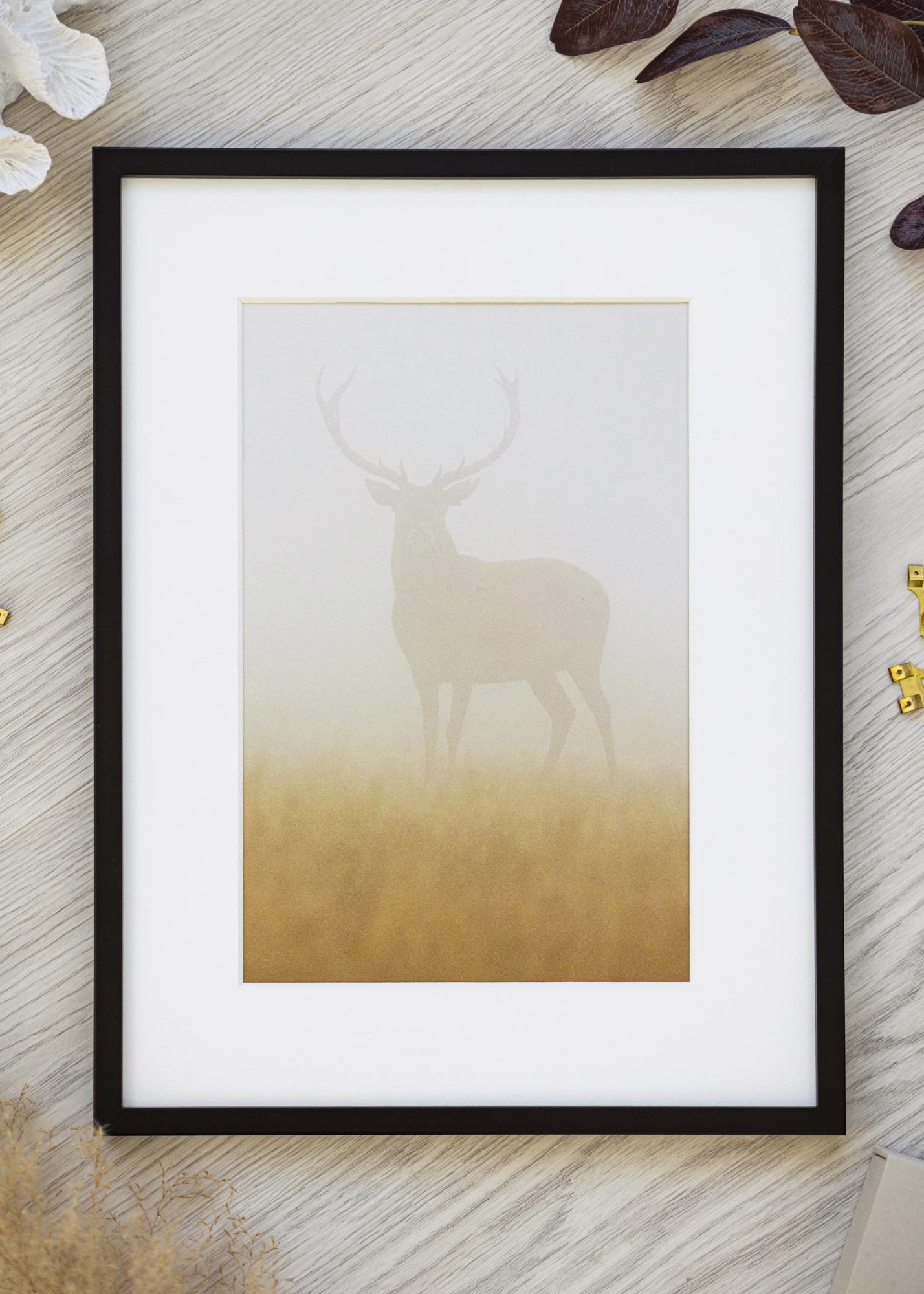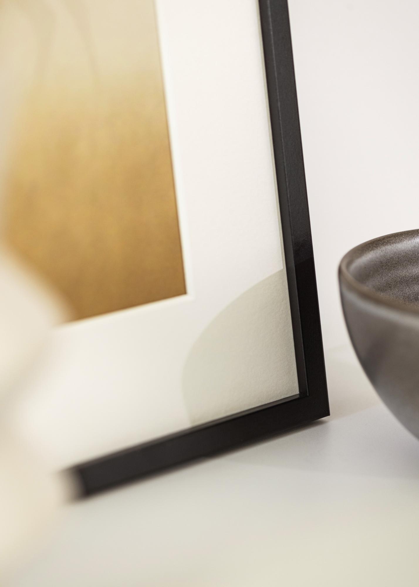 Rėmas pagamintas iš medžio ir turi 12 mm pločio ir 16 mm gylio rėmo juostelę. Tai suteikia stabilų ir tvirtą jausmą, išlaikant grakštų profilį. Juoda spalva suteikia amžiną eleganciją, kuri derės prie daugumos interjero stilių.