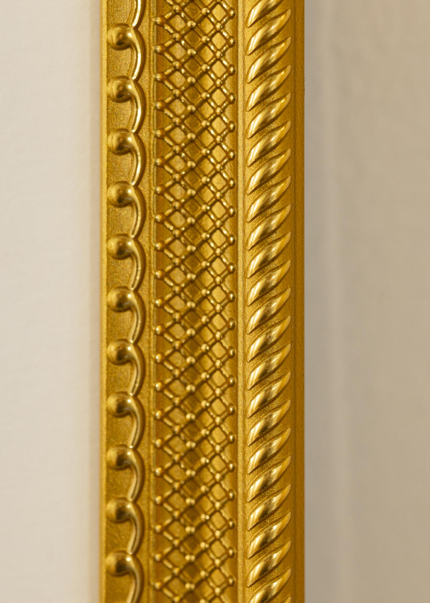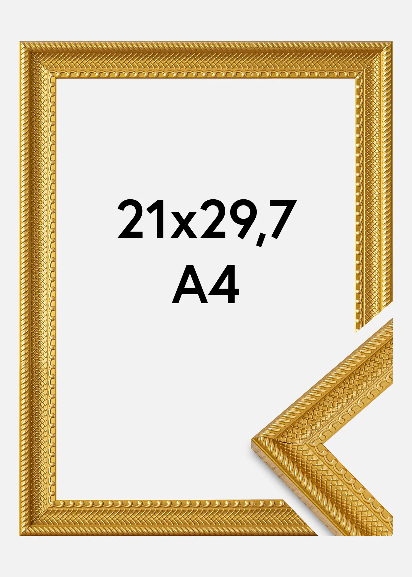 Šis elegantiškas aukso spalvos nuotraukų rėmelis yra tobula klasikinio dizaino ir šiuolaikinės funkcionalumo derinys. Su savo detalizuotais raštais palei kraštus ir blizgia apdaila, jis suteikia prabangią išvaizdą, kuri pagerina kiekvieną meno kūrinį ar fotografiją. Rėmas pagamintas iš kompozitinės medžiagos, kuri suteikia jam tiek tvirtumo, tiek lengvumo. Jis sukurtas taip, kad tiktų 21x29,7 cm (A4) dydžio motyvams, todėl idealiai tinka stilingai rodyti jūsų mėgstamus prisiminimus.