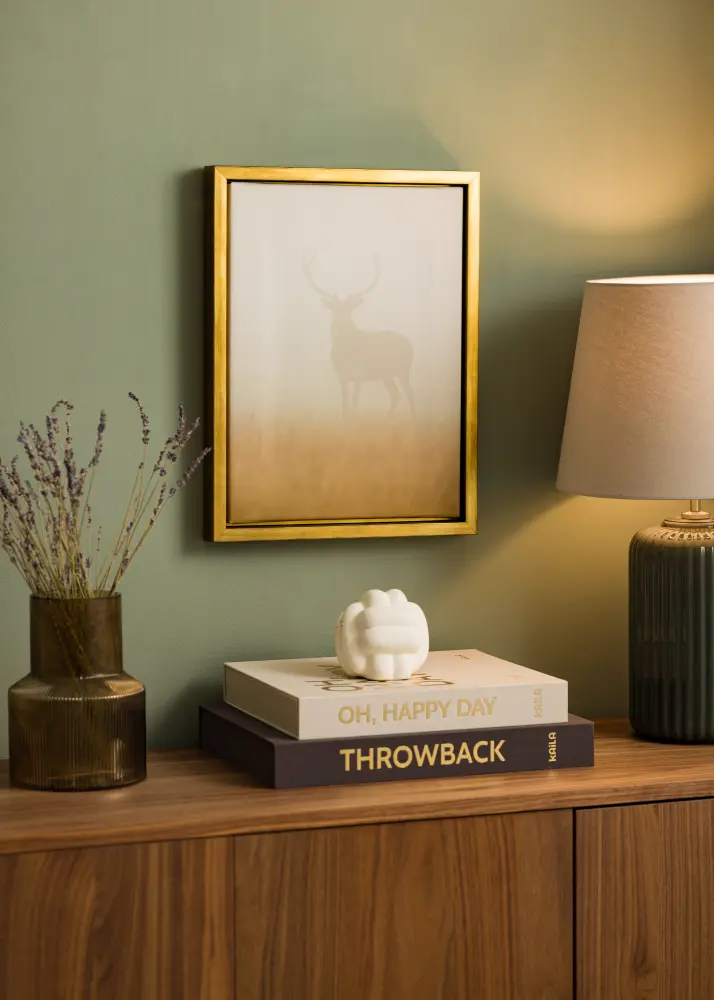 Rėmelis pagamintas iš pušies medienos, kuri suteikia patvarią ir stabilią konstrukciją. Rėmelio auksinė spalva suteikia rafinuotą akcentą, kuris puikiai tinka tiek moderniame, tiek klasikiniame interjere. Nesvarbu, ar norite pabrėžti šeimos portretą ar gražų peizažo paveikslą, šis rėmelis suteiks jūsų meno kūriniui dėmesį, kurio jis nusipelno.
