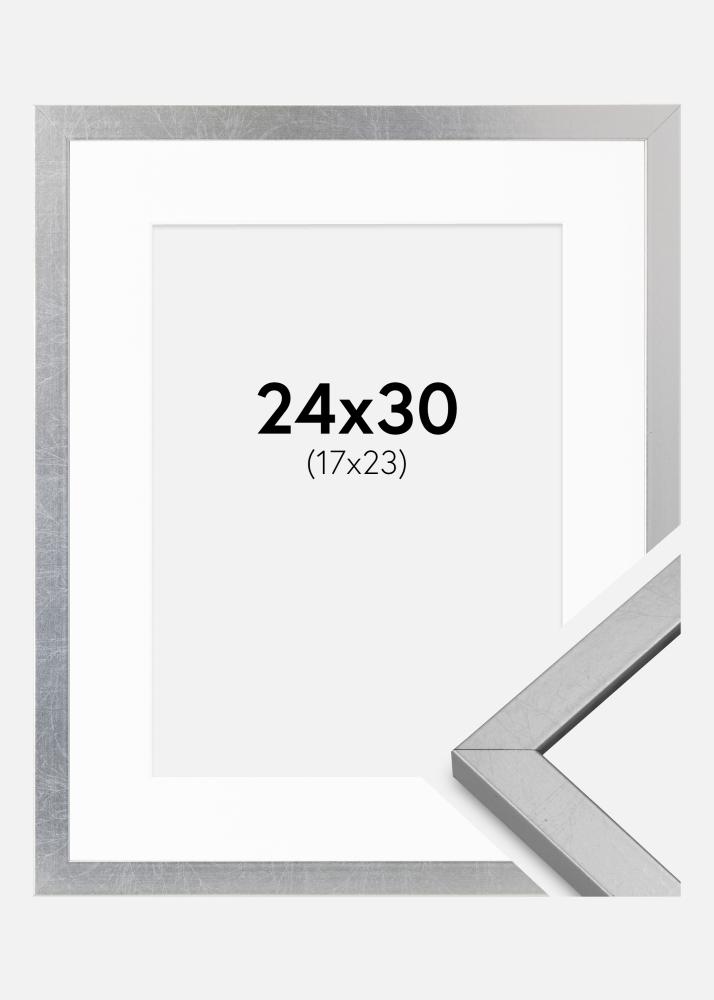 Rėmas Minerva Sidabras 24x30 cm - Paspartu Baltas 18x24 cm