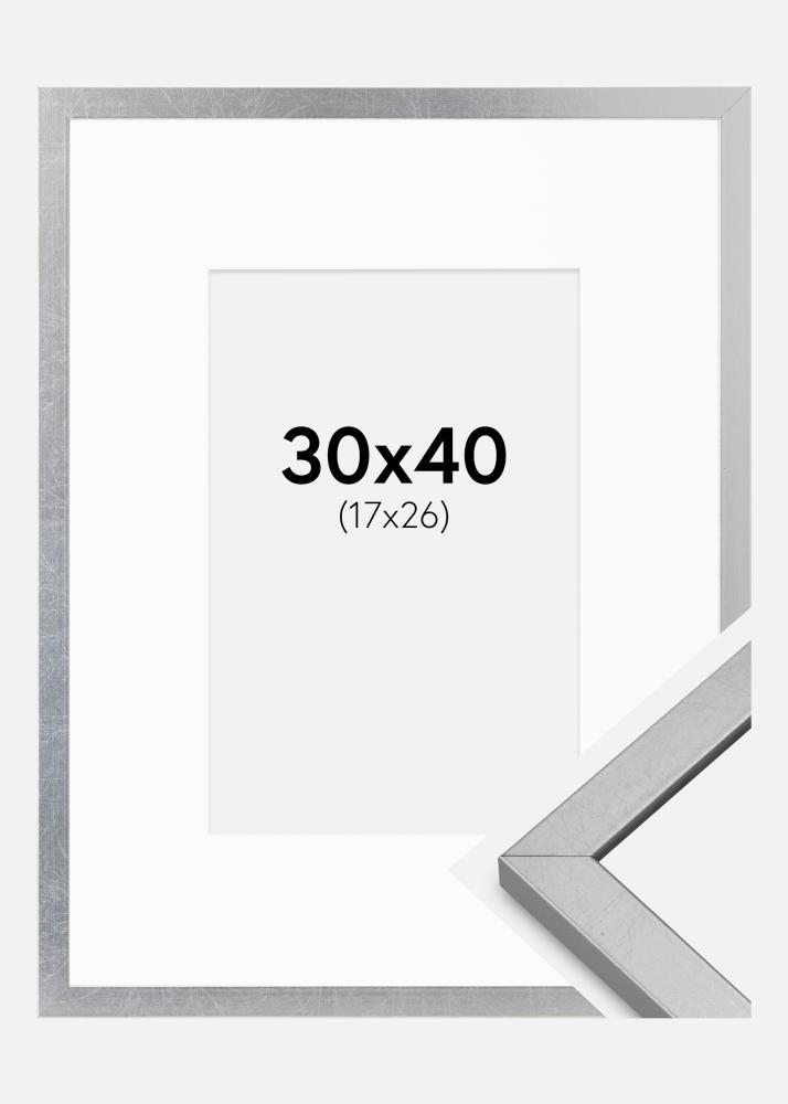 Rėmas Minerva Sidabras 30x40 cm - Paspartu Baltas 18x27 cm