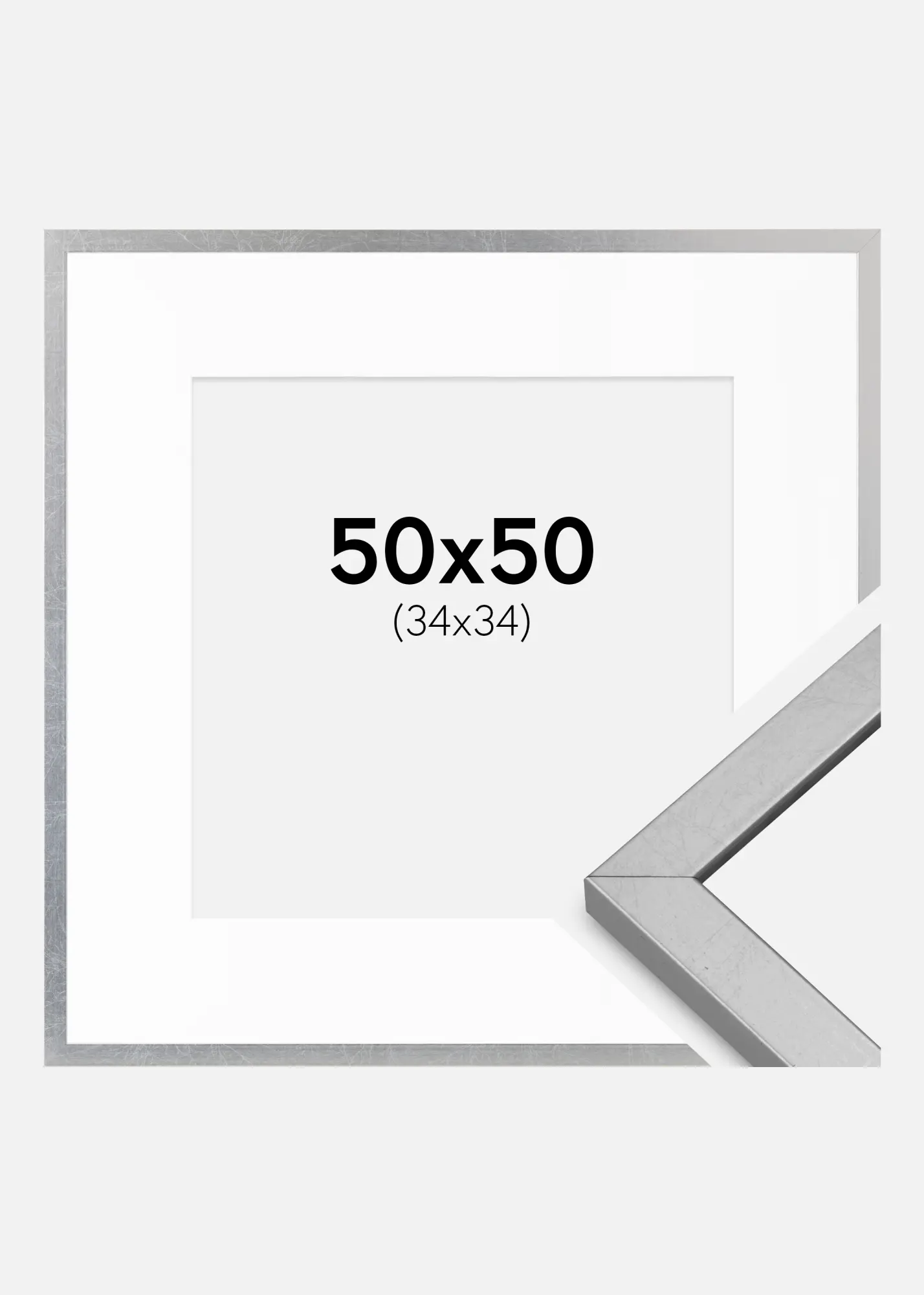 Rėmas Minerva Sidabras 50x50 cm - Paspartu Baltas 35x35 cm