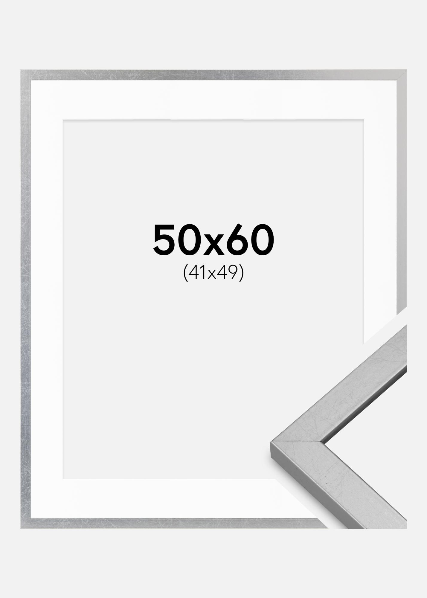 Rėmas Minerva Sidabras 50x60 cm - Paspartu Baltas 42x50 cm