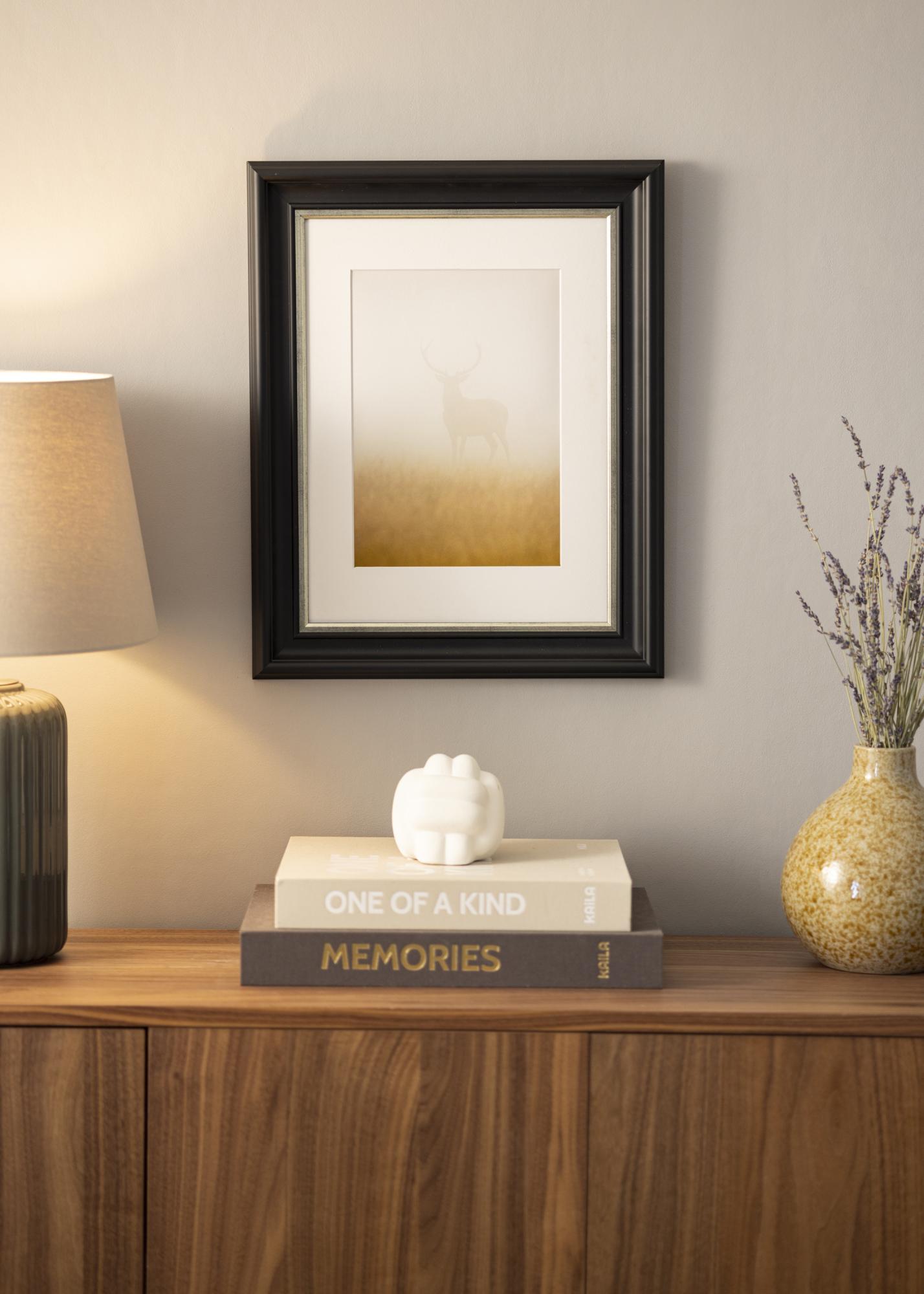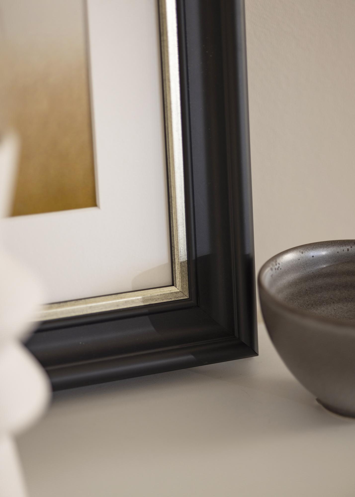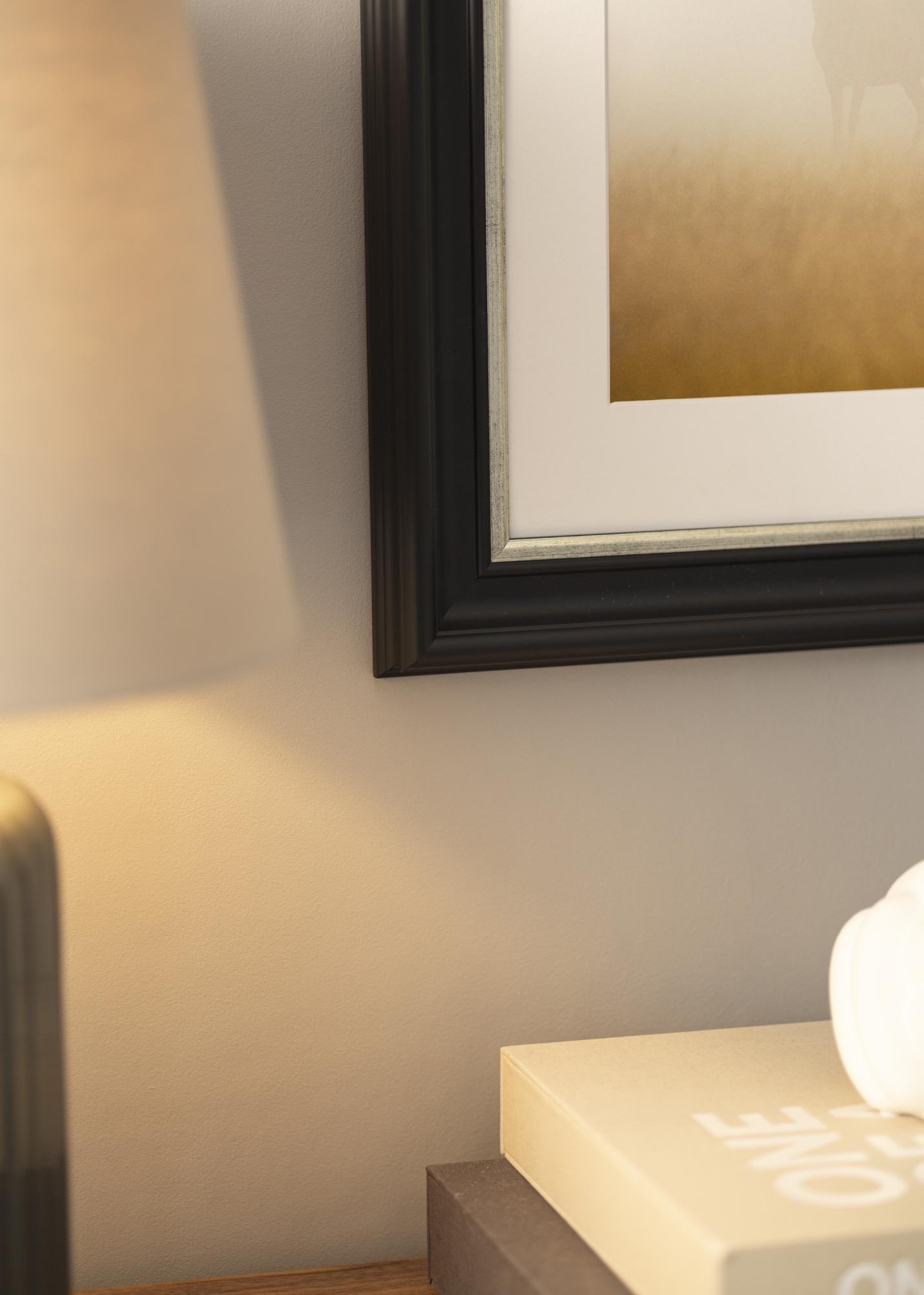 Mora Premium Juoda-Sidabrinė yra vienas iš mūsų puikiausių nuotraukų rėmų. Pagamintas iš medienos iš mūsų nuostabių Švedijos miškų ir surinktas mūsų pačių rėmų dirbtuvėse. Tai leidžia mums garantuoti kokybę, pranokstančią įprastą. Rėmas turi elegantišką plačią juodą 57 mm profilį su plonu sidabriniu šlifuotu krašteliu šalia motyvo. Puikiai tinka jūsų gražiausioms nuotraukoms!