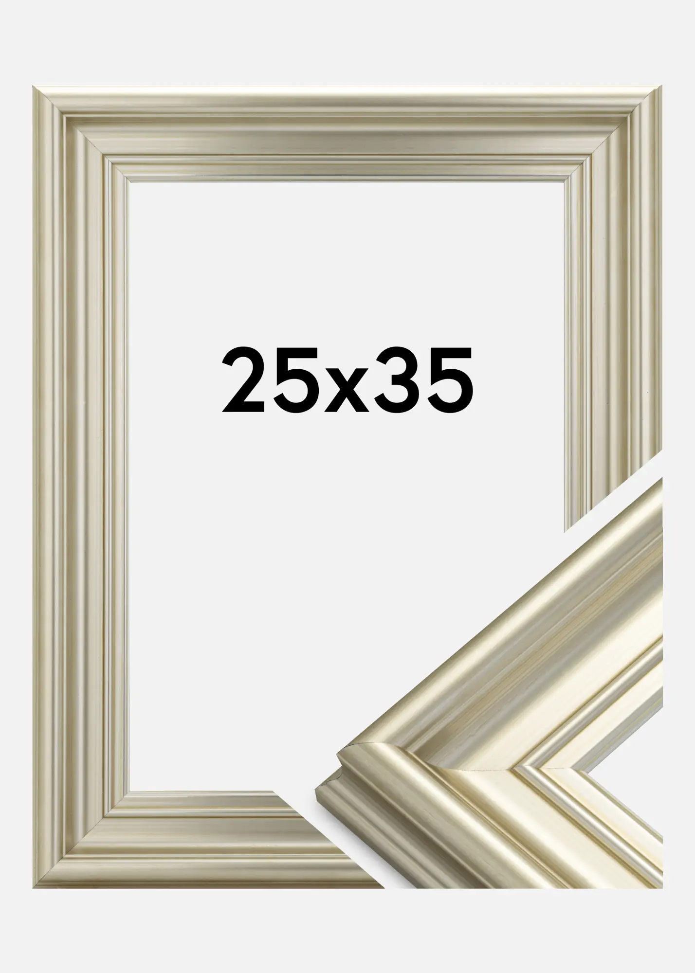 Mora Premium Sidabras yra vienas iš mūsų puošniausių sidabrinių rėmų. Pagamintas iš medienos mūsų gražiuose Švedijos miškuose ir surinktas mūsų pačių rėmų dirbtuvėse. Tai leidžia mums pažadėti kokybę, pranokstančią įprastą. Rėmas turi švelnią sidabro spalvos profilį sename dažytame stiliuje, kurio plotis yra net 57 mm. Puikiai tinka jūsų gražiausioms nuotraukoms!